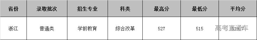 2020年合肥幼儿师范高等专科学校在浙江分专业录取分数线