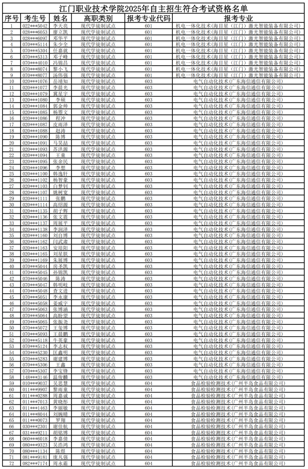 江门职业技术学院2025年自主招生审核通过名单公布