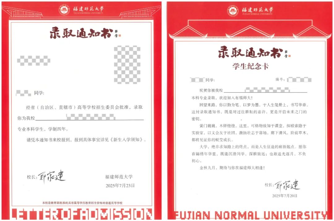 亲爱的同学们 2025年本科新生录取通知书已全新上线 即将启程飞往大家手中! 在等待这份喜悦的同时 你是否对大学生活充满期待与好奇? 为帮助大家提前了解 校园生活、专业学习等信息 招生与考试办公室特别开设 福建师大招办官方迎新QQ群 关于福建师大 你想知道的都在群里! 温馨提示:为避免无关人员加入招办官方新生群,烦请想要入群的新生以“姓名+考生号”的备注申请加群,我们将比对录取信息后通过申请哦~ ①群群号:373252157 ②群群号:1046038417 精心设计的录取通知书 有没有让你一眼心动呢 分享你对录取通知书的喜爱 将有机会赢取限量版校园周边! 将本篇推文转发至朋友圈 在评论区留言并带上tag 截止8月1日晚24:00 留言点赞超过100 小魔莉将送上 2025专属精美校园周边! (神秘礼品将在开学后为获奖者送出!)