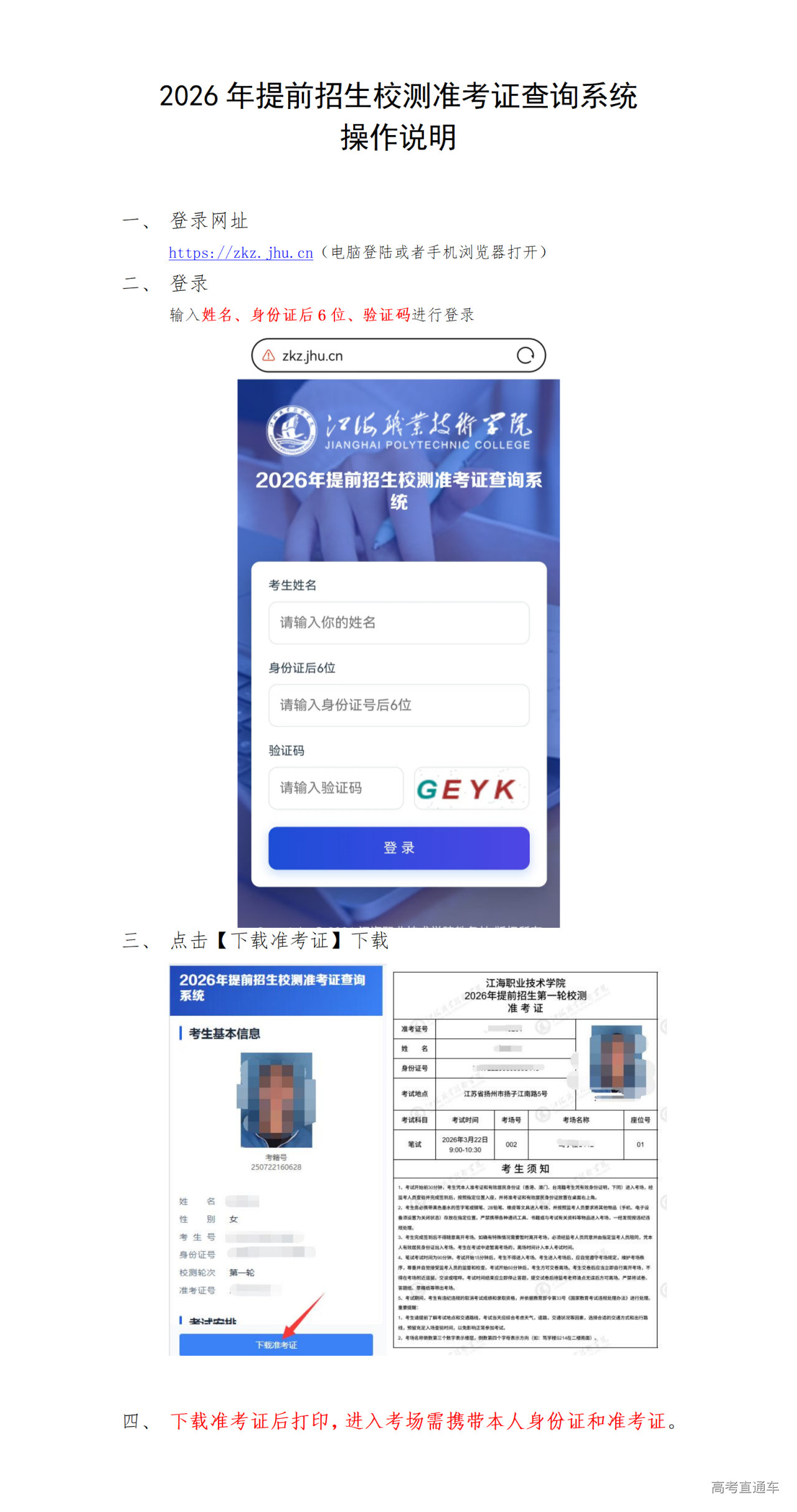 2、2026年提前招生校测准考证查询系统操作说明