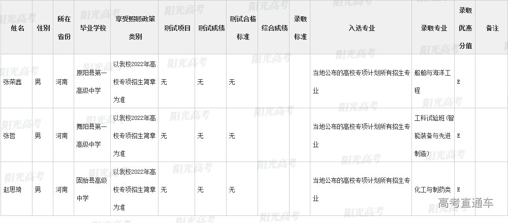 ③高校对学科特长或创新潜质特别突出的个别优秀考生一本批次录取控制分数线下破格录取的用D标注;