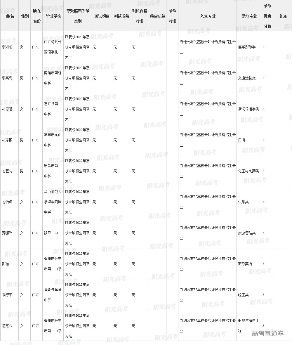 ④按分省计划择优录取的用E标注;