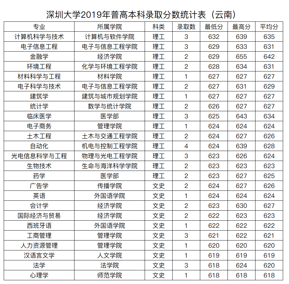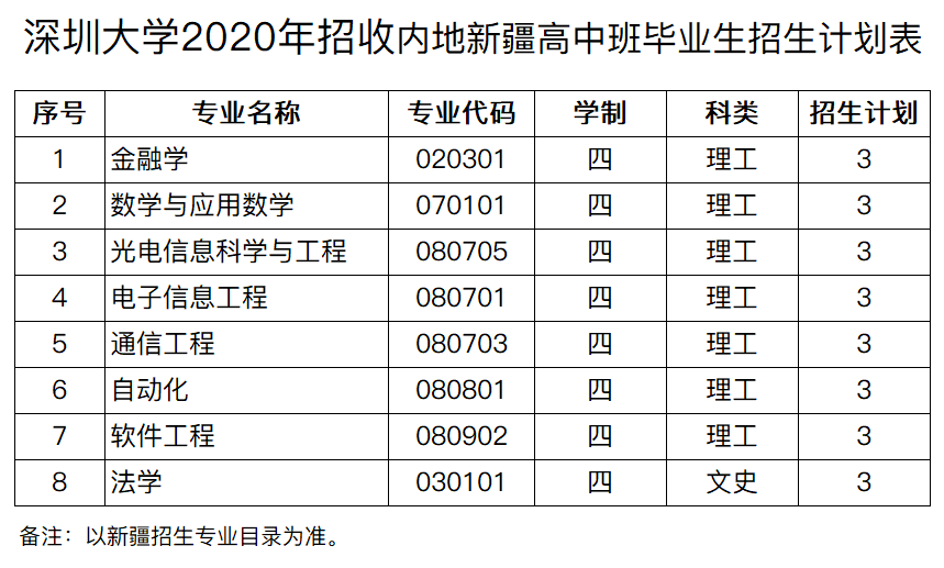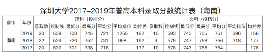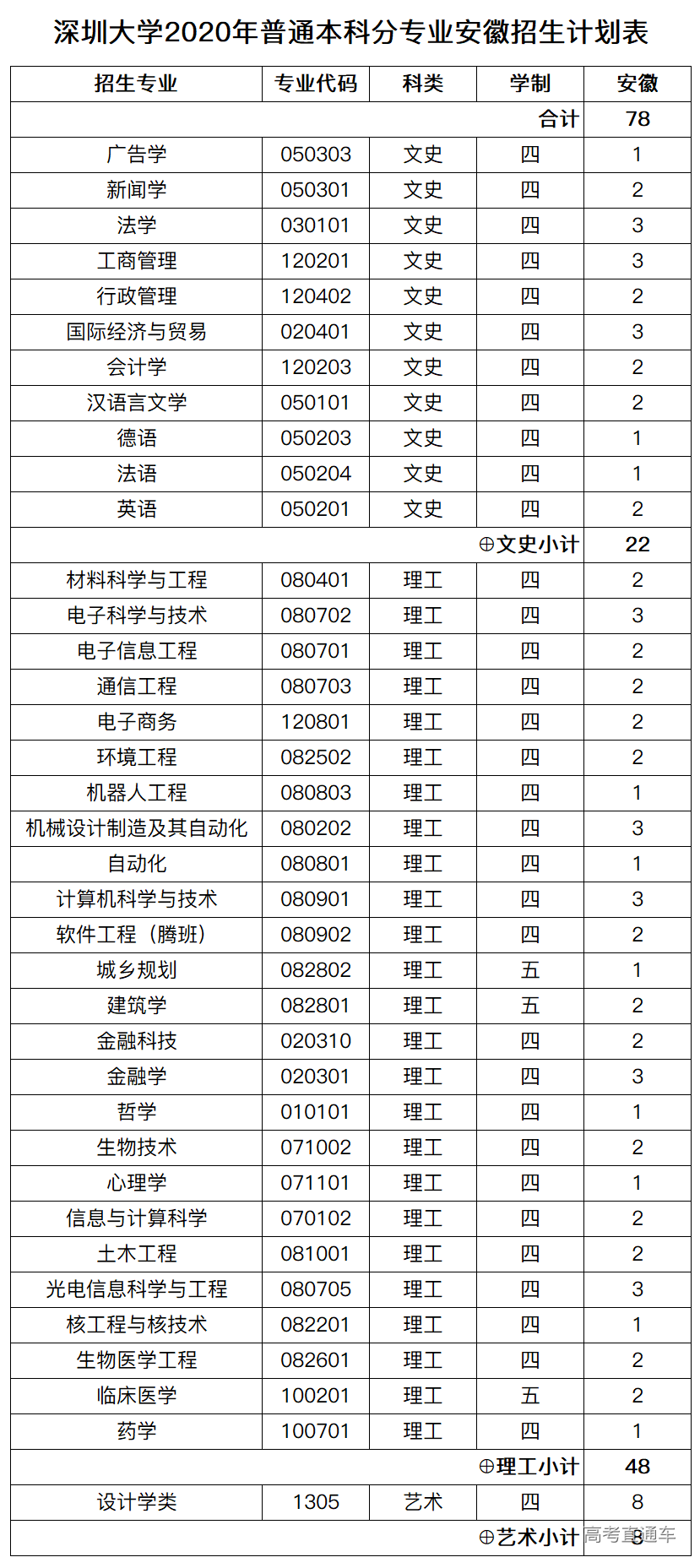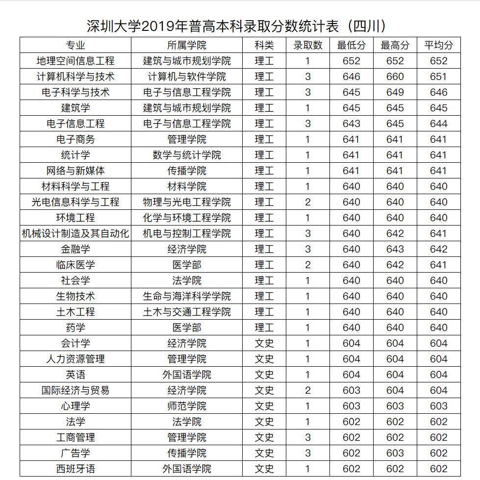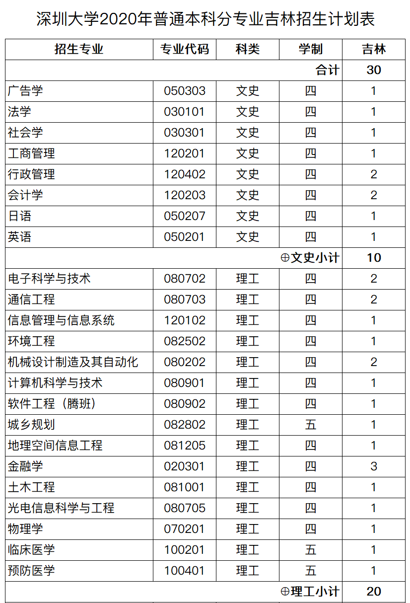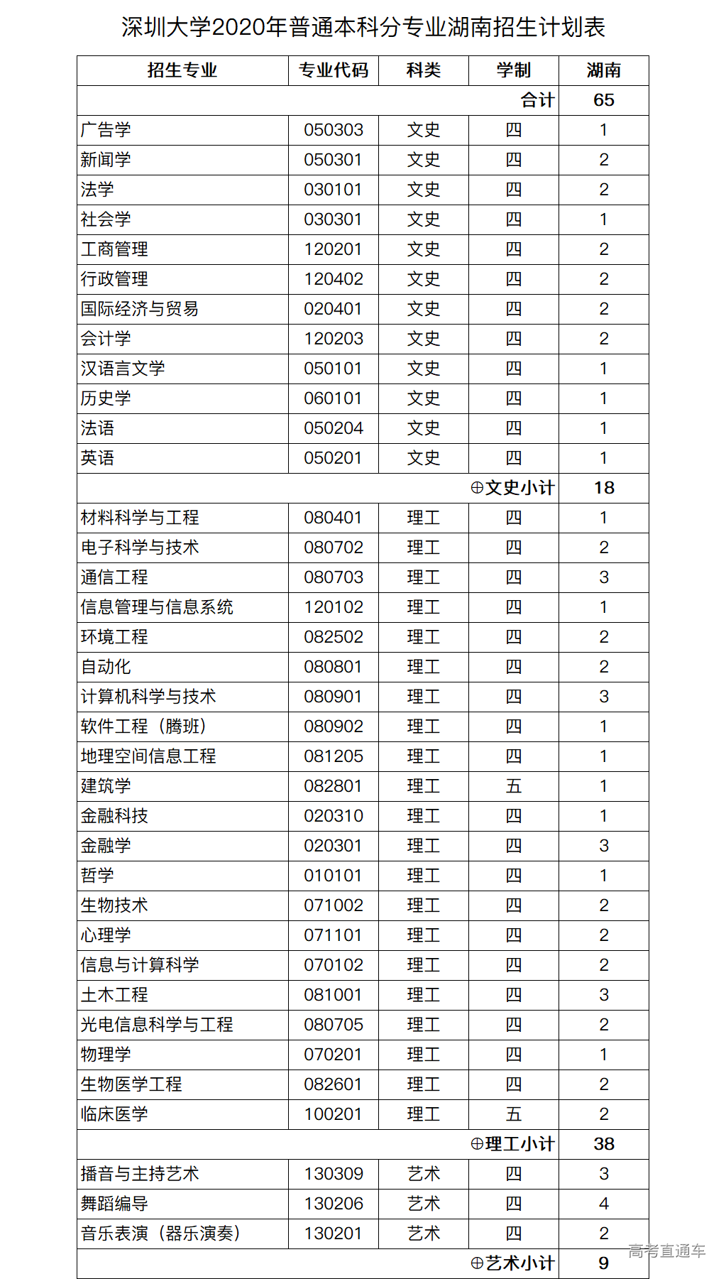天津 2020年天津首年招生计划表: 1 安徽 历年安徽录取分数线统计: 按科类统计(按投档分统计) 按专业统计(按投档分统计) 2020年安徽招生计划表: 2 北京 历年北京录取分数线统计: 按科类统计(按投档分统计) 按专业统计(按投档分统计) 2020年北京招生计划表: 3 重庆 历年重庆录取分数线统计: 按科类统计(按投档分统计) 按专业统计(按投档分统计) 2020年重庆招生计划表: 4 福建 历年福建录取分数线统计: 按科类统计(按投档分统计) 按专业统计(按投档分统计) 2020年福建招生计划表: 5 甘肃 历年甘肃录取分数线统计: 按科类统计(按投档分统计) 按专业统计(按投档分统计) 2020年甘肃招生计划表: 6 广西 历年广西录取分数线统计: 按科类统计(按投档分统计) 按专业统计(按投档分统计) 2020年广西招生计划表: 7 贵州 历年贵州录取分数线统计: 按科类统计(按投档分统计) 按专业统计(按投档分统计) 2020年贵州招生计划表: 8 海南 历年海南录取分数线统计: 按科类统计(按投档分统计) 按专业统计(按投档分统计) 2020年海南招生计划表: 9 河北 历年河北录取分数线统计: 按科类统计(按投档分统计) 按专业统计(按投档分统计) 2020年河北招生计划表: 10 黑龙江 历年黑龙江录取分数线统计: 按科类统计(按投档分统计) 按专业统计(按投档分统计) 2020年黑龙江招生计划表: 11 河南 历年河南录取分数线统计: 按科类统计(按投档分统计) 按专业统计(按投档分统计) 2020年河南招生计划表: 12 湖北 历年湖北录取分数线统计: 按科类统计(按投档分统计) 按专业统计(按投档分统计) 2020年湖北招生计划表: 13 湖南 历年湖南录取分数线统计: 按科类统计(按投档分统计) 按专业统计(按投档分统计) 2020年湖南招生计划表: 14 江苏 历年江苏录取分数线统计: 按科类统计(按投档分统计) 按专业统计(按投档分统计) 2020年江苏招生计划表: 15 江西 历年江西录取分数线统计: 按科类统计(按投档分统计) 按专业统计(按投档分统计) 2020年江西招生计划表: 16 吉林 历年吉林录取分数线统计: 按科类统计(按投档分统计) 按专业统计(按投档分统计) 2020年吉林招生计划表: 17 辽宁 历年辽宁录取分数线统计: 按科类统计(按投档分统计) 按专业统计(按投档分统计) 2020年辽宁招生计划表: 18 内蒙古 历年内蒙古录取分数线统计: 按科类统计(按投档分统计) 按专业统计(按投档分统计) 2020年内蒙古招生计划表: 19 青海 历年青海录取分数线统计: 按科类统计(按投档分统计) 按专业统计(按投档分统计) 2020年青海招生计划表: 20 陕西 历年陕西录取分数线统计: 按科类统计(按投档分统计) 按专业统计(按投档分统计) 2020年陕西招生计划表: 21 山东 历年山东录取分数线统计: 按科类统计(按投档分统计) 按专业统计(按投档分统计) 2020年山东招生计划表: 22 上海 历年上海录取分数线统计: 按科类统计(按投档分统计) 按专业统计(按投档分统计) 2020年上海招生计划表: 23 山西 历年山西录取分数线统计: 按科类统计(按投档分统计) 按专业统计(按投档分统计) 2020年山西招生计划表: 24 四川 历年四川录取分数线统计: 按科类统计(按投档分统计) 按专业统计(按投档分统计) 2020年四川招生计划表: 25 云南 历年云南录取分数线统计: 按科类统计(按投档分统计) 按专业统计(按投档分统计) 2020年云南招生计划表: 26 浙江 历年浙江录取分数线统计: 按科类统计(按投档分统计) 按专业统计(按投档分统计) 2020年浙江招生计划表: 27 新疆 历年新疆录取分数线统计: 按科类统计(按投档分统计) 按专业统计(按投档分统计) 2020年新疆招生计划表: 深圳大学2020年普通本科 分专业外省招生计划总表 非高考改革省份: 高考改革省份: 备注: 1.计划及科类等以当地省(自治区、直辖市)公布的招生专业目录为准; 2.浙江、上海、北京、天津、山东、海南不分文理; 3.按专业招生,按通识教育与专业教育相结合的大类模式培养,申请毕业前一年有转专业的机会; 4.学费(不含书费)按学分制收费,由课程学分学费和专业学费两部分组成,每学期学分学费按学生实际修读的课程总学分计算。