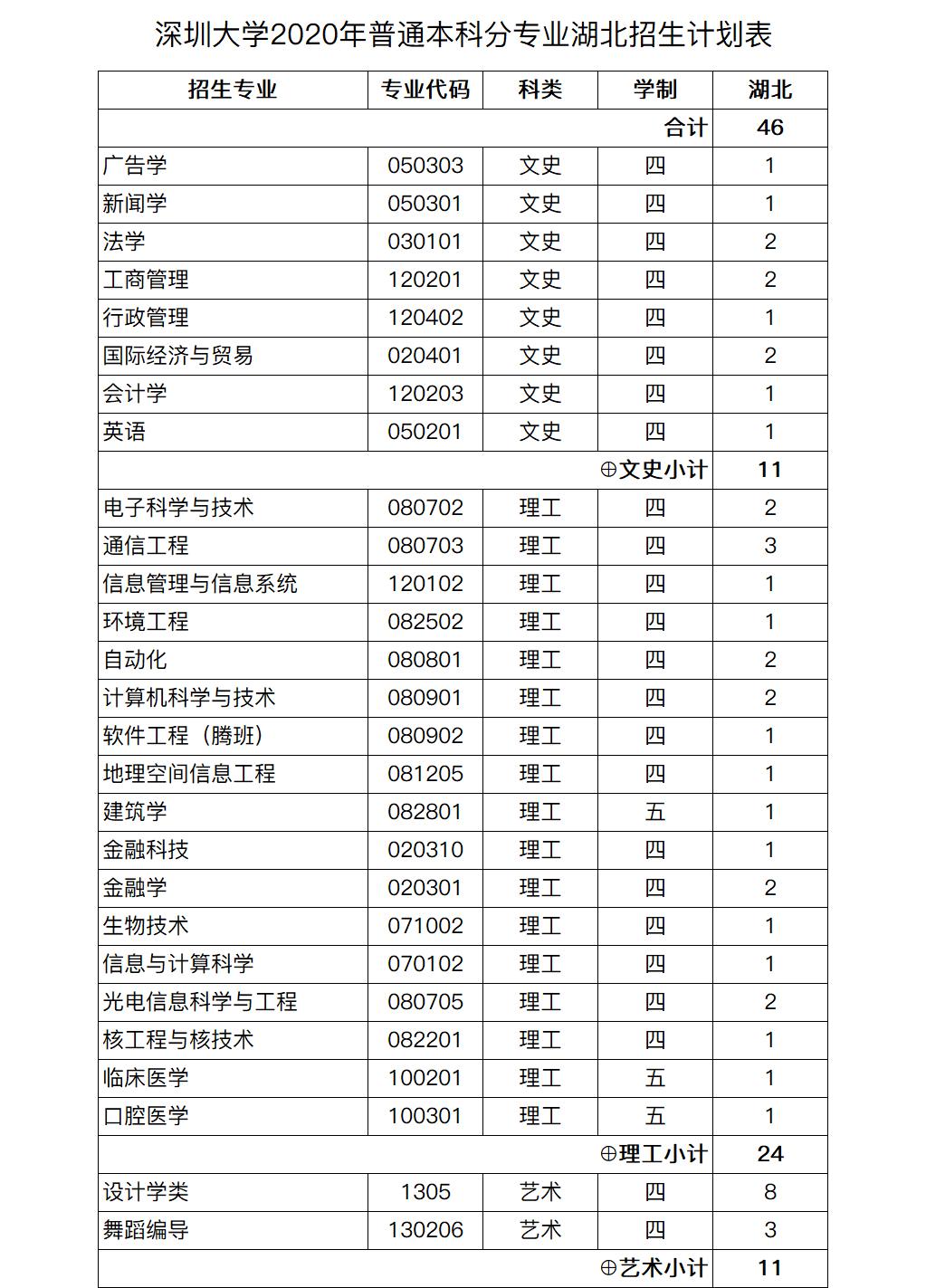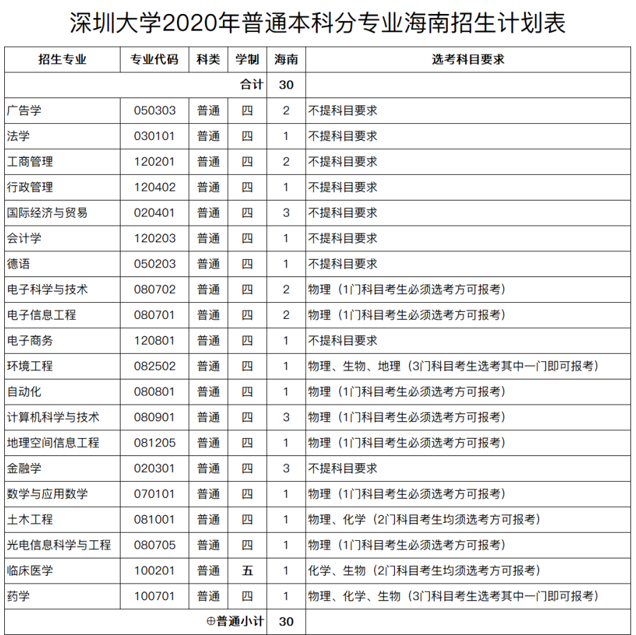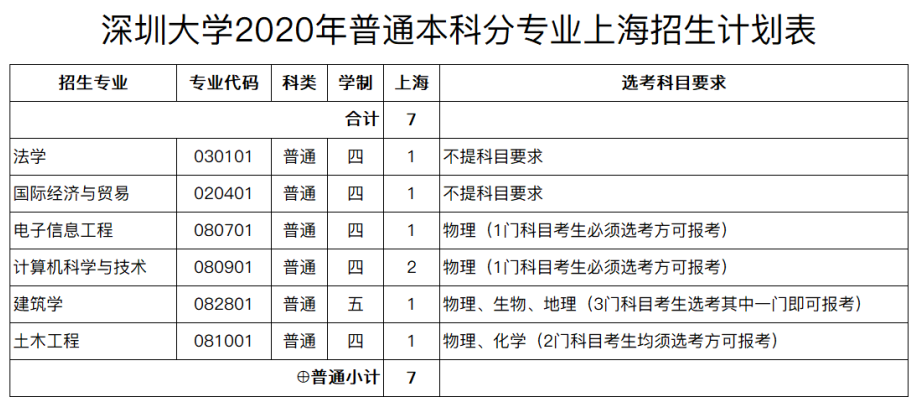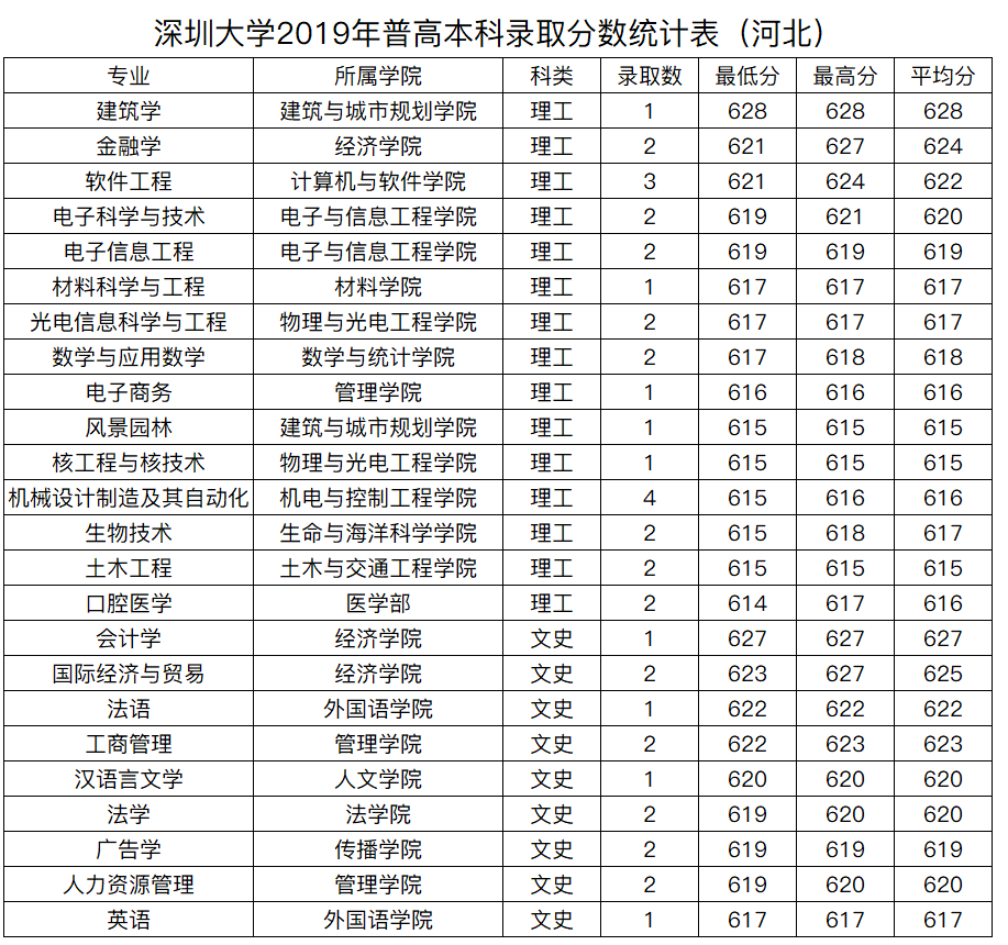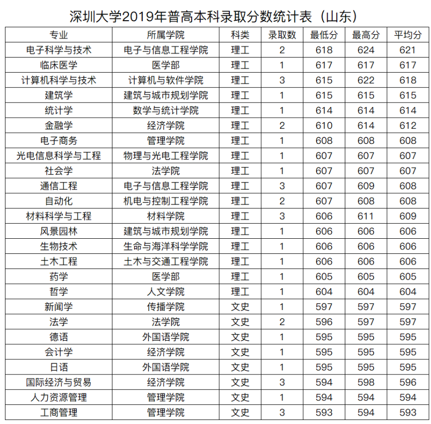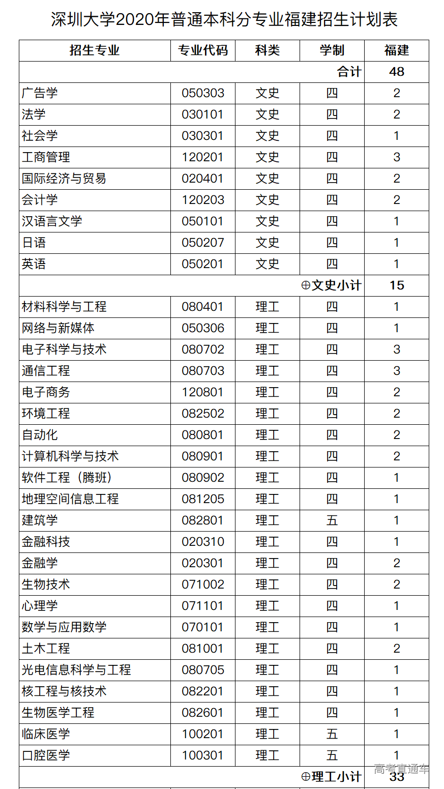 天津 2020年天津首年招生计划表: 1 安徽 历年安徽录取分数线统计: 按科类统计(按投档分统计) 按专业统计(按投档分统计) 2020年安徽招生计划表: 2 北京 历年北京录取分数线统计: 按科类统计(按投档分统计) 按专业统计(按投档分统计) 2020年北京招生计划表: 3 重庆 历年重庆录取分数线统计: 按科类统计(按投档分统计) 按专业统计(按投档分统计) 2020年重庆招生计划表: 4 福建 历年福建录取分数线统计: 按科类统计(按投档分统计) 按专业统计(按投档分统计) 2020年福建招生计划表: 5 甘肃 历年甘肃录取分数线统计: 按科类统计(按投档分统计) 按专业统计(按投档分统计) 2020年甘肃招生计划表: 6 广西 历年广西录取分数线统计: 按科类统计(按投档分统计) 按专业统计(按投档分统计) 2020年广西招生计划表: 7 贵州 历年贵州录取分数线统计: 按科类统计(按投档分统计) 按专业统计(按投档分统计) 2020年贵州招生计划表: 8 海南 历年海南录取分数线统计: 按科类统计(按投档分统计) 按专业统计(按投档分统计) 2020年海南招生计划表: 9 河北 历年河北录取分数线统计: 按科类统计(按投档分统计) 按专业统计(按投档分统计) 2020年河北招生计划表: 10 黑龙江 历年黑龙江录取分数线统计: 按科类统计(按投档分统计) 按专业统计(按投档分统计) 2020年黑龙江招生计划表: 11 河南 历年河南录取分数线统计: 按科类统计(按投档分统计) 按专业统计(按投档分统计) 2020年河南招生计划表: 12 湖北 历年湖北录取分数线统计: 按科类统计(按投档分统计) 按专业统计(按投档分统计) 2020年湖北招生计划表: 13 湖南 历年湖南录取分数线统计: 按科类统计(按投档分统计) 按专业统计(按投档分统计) 2020年湖南招生计划表: 14 江苏 历年江苏录取分数线统计: 按科类统计(按投档分统计) 按专业统计(按投档分统计) 2020年江苏招生计划表: 15 江西 历年江西录取分数线统计: 按科类统计(按投档分统计) 按专业统计(按投档分统计) 2020年江西招生计划表: 16 吉林 历年吉林录取分数线统计: 按科类统计(按投档分统计) 按专业统计(按投档分统计) 2020年吉林招生计划表: 17 辽宁 历年辽宁录取分数线统计: 按科类统计(按投档分统计) 按专业统计(按投档分统计) 2020年辽宁招生计划表: 18 内蒙古 历年内蒙古录取分数线统计: 按科类统计(按投档分统计) 按专业统计(按投档分统计) 2020年内蒙古招生计划表: 19 青海 历年青海录取分数线统计: 按科类统计(按投档分统计) 按专业统计(按投档分统计) 2020年青海招生计划表: 20 陕西 历年陕西录取分数线统计: 按科类统计(按投档分统计) 按专业统计(按投档分统计) 2020年陕西招生计划表: 21 山东 历年山东录取分数线统计: 按科类统计(按投档分统计) 按专业统计(按投档分统计) 2020年山东招生计划表: 22 上海 历年上海录取分数线统计: 按科类统计(按投档分统计) 按专业统计(按投档分统计) 2020年上海招生计划表: 23 山西 历年山西录取分数线统计: 按科类统计(按投档分统计) 按专业统计(按投档分统计) 2020年山西招生计划表: 24 四川 历年四川录取分数线统计: 按科类统计(按投档分统计) 按专业统计(按投档分统计) 2020年四川招生计划表: 25 云南 历年云南录取分数线统计: 按科类统计(按投档分统计) 按专业统计(按投档分统计) 2020年云南招生计划表: 26 浙江 历年浙江录取分数线统计: 按科类统计(按投档分统计) 按专业统计(按投档分统计) 2020年浙江招生计划表: 27 新疆 历年新疆录取分数线统计: 按科类统计(按投档分统计) 按专业统计(按投档分统计) 2020年新疆招生计划表: 深圳大学2020年普通本科 分专业外省招生计划总表 非高考改革省份: 高考改革省份: 备注: 1.计划及科类等以当地省(自治区、直辖市)公布的招生专业目录为准; 2.浙江、上海、北京、天津、山东、海南不分文理; 3.按专业招生,按通识教育与专业教育相结合的大类模式培养,申请毕业前一年有转专业的机会; 4.学费(不含书费)按学分制收费,由课程学分学费和专业学费两部分组成,每学期学分学费按学生实际修读的课程总学分计算。