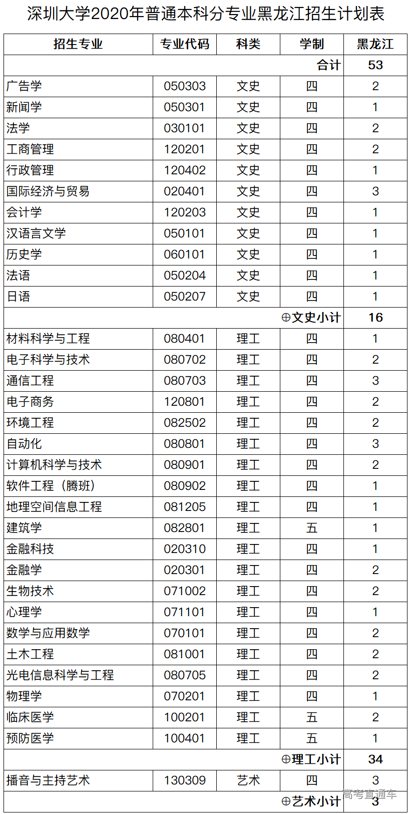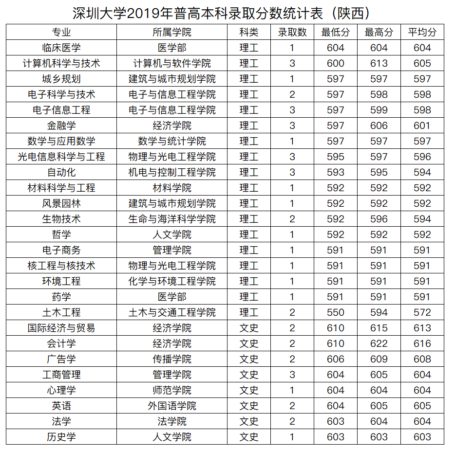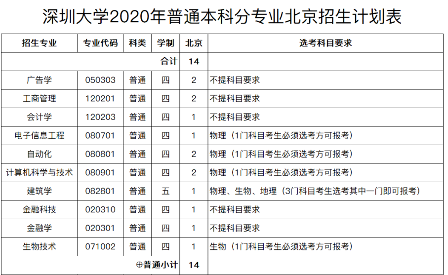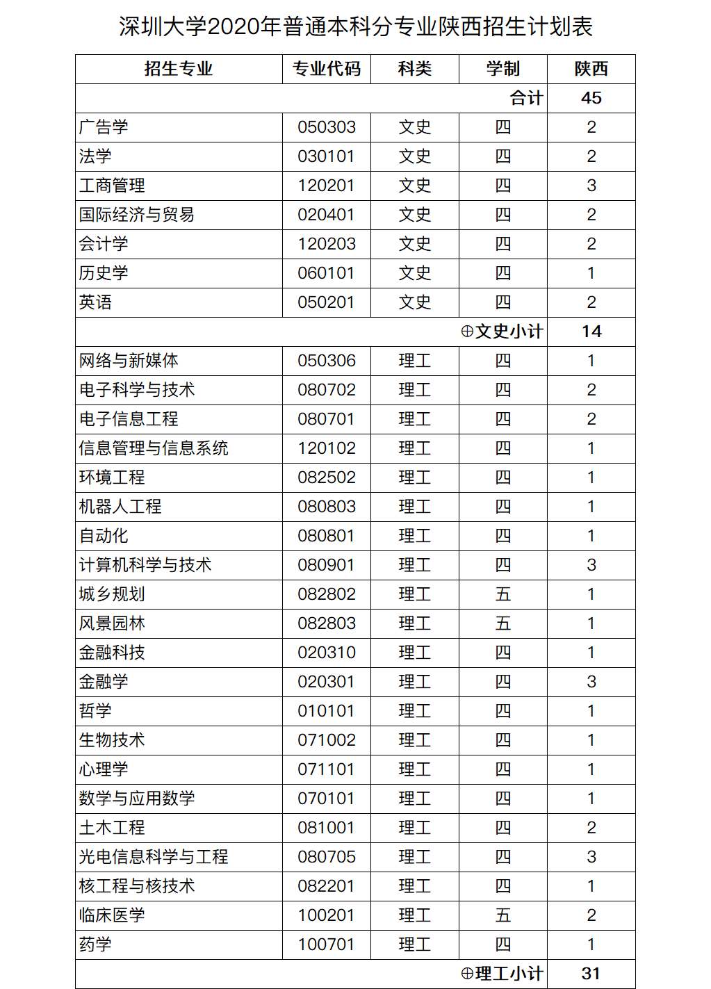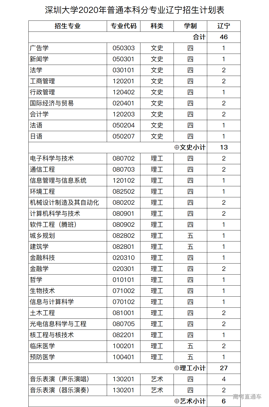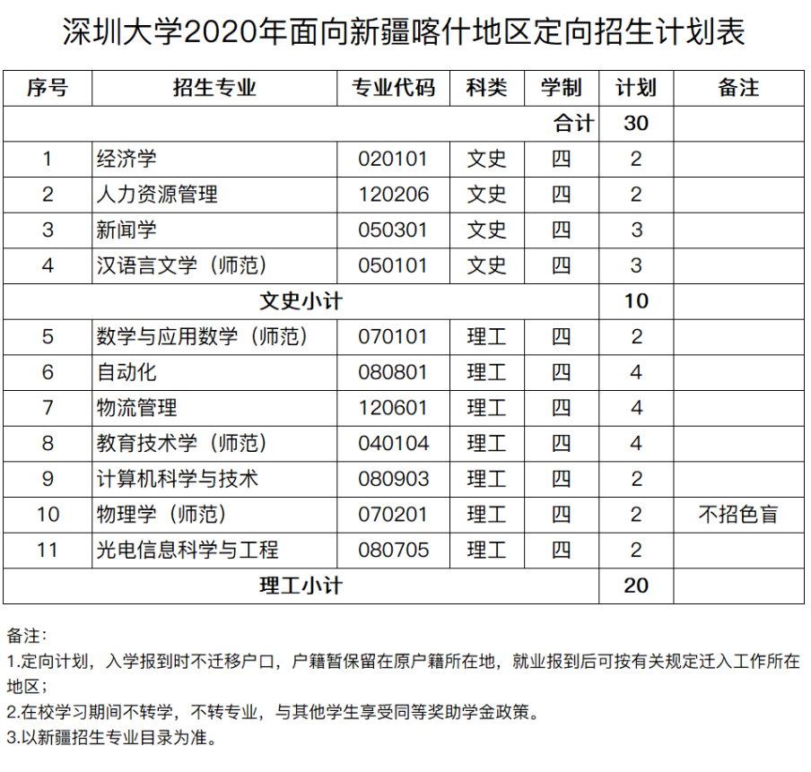 天津 2020年天津首年招生计划表: 1 安徽 历年安徽录取分数线统计: 按科类统计(按投档分统计) 按专业统计(按投档分统计) 2020年安徽招生计划表: 2 北京 历年北京录取分数线统计: 按科类统计(按投档分统计) 按专业统计(按投档分统计) 2020年北京招生计划表: 3 重庆 历年重庆录取分数线统计: 按科类统计(按投档分统计) 按专业统计(按投档分统计) 2020年重庆招生计划表: 4 福建 历年福建录取分数线统计: 按科类统计(按投档分统计) 按专业统计(按投档分统计) 2020年福建招生计划表: 5 甘肃 历年甘肃录取分数线统计: 按科类统计(按投档分统计) 按专业统计(按投档分统计) 2020年甘肃招生计划表: 6 广西 历年广西录取分数线统计: 按科类统计(按投档分统计) 按专业统计(按投档分统计) 2020年广西招生计划表: 7 贵州 历年贵州录取分数线统计: 按科类统计(按投档分统计) 按专业统计(按投档分统计) 2020年贵州招生计划表: 8 海南 历年海南录取分数线统计: 按科类统计(按投档分统计) 按专业统计(按投档分统计) 2020年海南招生计划表: 9 河北 历年河北录取分数线统计: 按科类统计(按投档分统计) 按专业统计(按投档分统计) 2020年河北招生计划表: 10 黑龙江 历年黑龙江录取分数线统计: 按科类统计(按投档分统计) 按专业统计(按投档分统计) 2020年黑龙江招生计划表: 11 河南 历年河南录取分数线统计: 按科类统计(按投档分统计) 按专业统计(按投档分统计) 2020年河南招生计划表: 12 湖北 历年湖北录取分数线统计: 按科类统计(按投档分统计) 按专业统计(按投档分统计) 2020年湖北招生计划表: 13 湖南 历年湖南录取分数线统计: 按科类统计(按投档分统计) 按专业统计(按投档分统计) 2020年湖南招生计划表: 14 江苏 历年江苏录取分数线统计: 按科类统计(按投档分统计) 按专业统计(按投档分统计) 2020年江苏招生计划表: 15 江西 历年江西录取分数线统计: 按科类统计(按投档分统计) 按专业统计(按投档分统计) 2020年江西招生计划表: 16 吉林 历年吉林录取分数线统计: 按科类统计(按投档分统计) 按专业统计(按投档分统计) 2020年吉林招生计划表: 17 辽宁 历年辽宁录取分数线统计: 按科类统计(按投档分统计) 按专业统计(按投档分统计) 2020年辽宁招生计划表: 18 内蒙古 历年内蒙古录取分数线统计: 按科类统计(按投档分统计) 按专业统计(按投档分统计) 2020年内蒙古招生计划表: 19 青海 历年青海录取分数线统计: 按科类统计(按投档分统计) 按专业统计(按投档分统计) 2020年青海招生计划表: 20 陕西 历年陕西录取分数线统计: 按科类统计(按投档分统计) 按专业统计(按投档分统计) 2020年陕西招生计划表: 21 山东 历年山东录取分数线统计: 按科类统计(按投档分统计) 按专业统计(按投档分统计) 2020年山东招生计划表: 22 上海 历年上海录取分数线统计: 按科类统计(按投档分统计) 按专业统计(按投档分统计) 2020年上海招生计划表: 23 山西 历年山西录取分数线统计: 按科类统计(按投档分统计) 按专业统计(按投档分统计) 2020年山西招生计划表: 24 四川 历年四川录取分数线统计: 按科类统计(按投档分统计) 按专业统计(按投档分统计) 2020年四川招生计划表: 25 云南 历年云南录取分数线统计: 按科类统计(按投档分统计) 按专业统计(按投档分统计) 2020年云南招生计划表: 26 浙江 历年浙江录取分数线统计: 按科类统计(按投档分统计) 按专业统计(按投档分统计) 2020年浙江招生计划表: 27 新疆 历年新疆录取分数线统计: 按科类统计(按投档分统计) 按专业统计(按投档分统计) 2020年新疆招生计划表: 深圳大学2020年普通本科 分专业外省招生计划总表 非高考改革省份: 高考改革省份: 备注: 1.计划及科类等以当地省(自治区、直辖市)公布的招生专业目录为准; 2.浙江、上海、北京、天津、山东、海南不分文理; 3.按专业招生,按通识教育与专业教育相结合的大类模式培养,申请毕业前一年有转专业的机会; 4.学费(不含书费)按学分制收费,由课程学分学费和专业学费两部分组成,每学期学分学费按学生实际修读的课程总学分计算。
