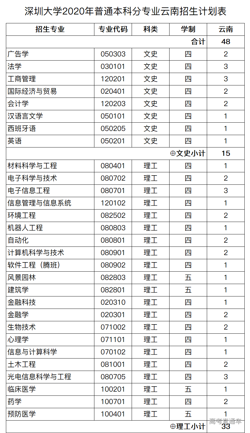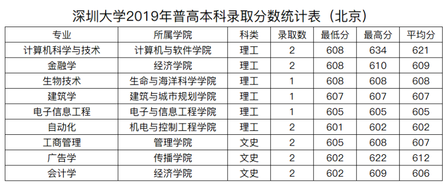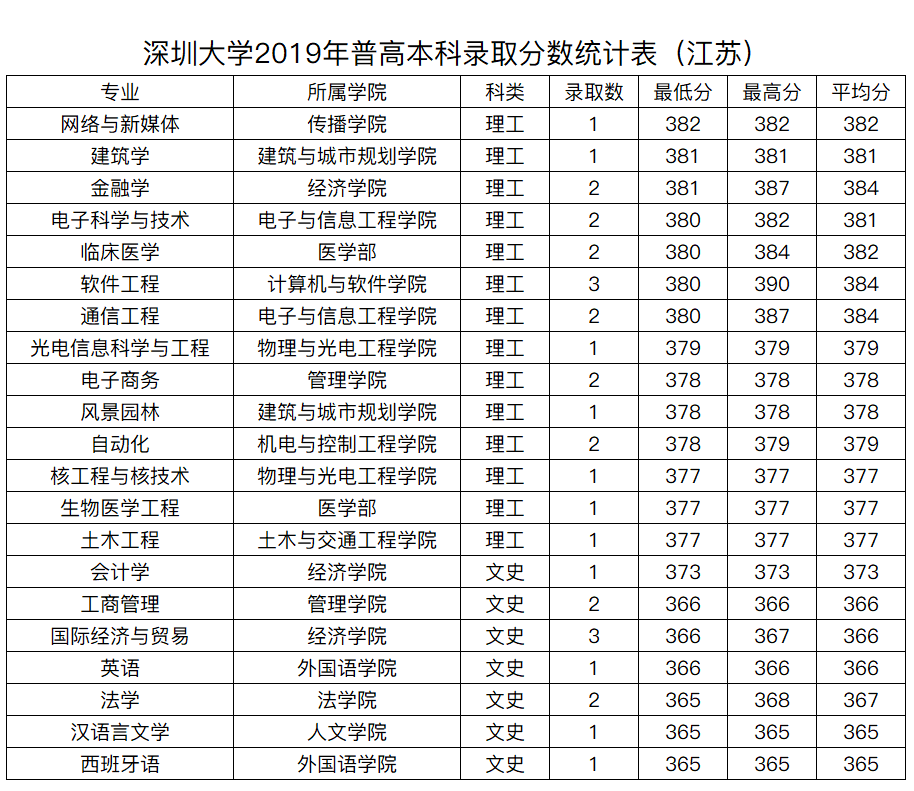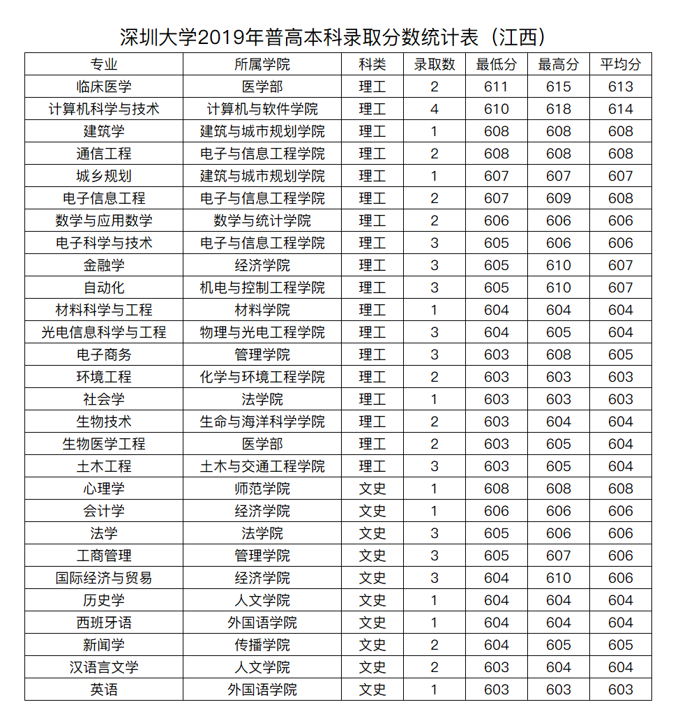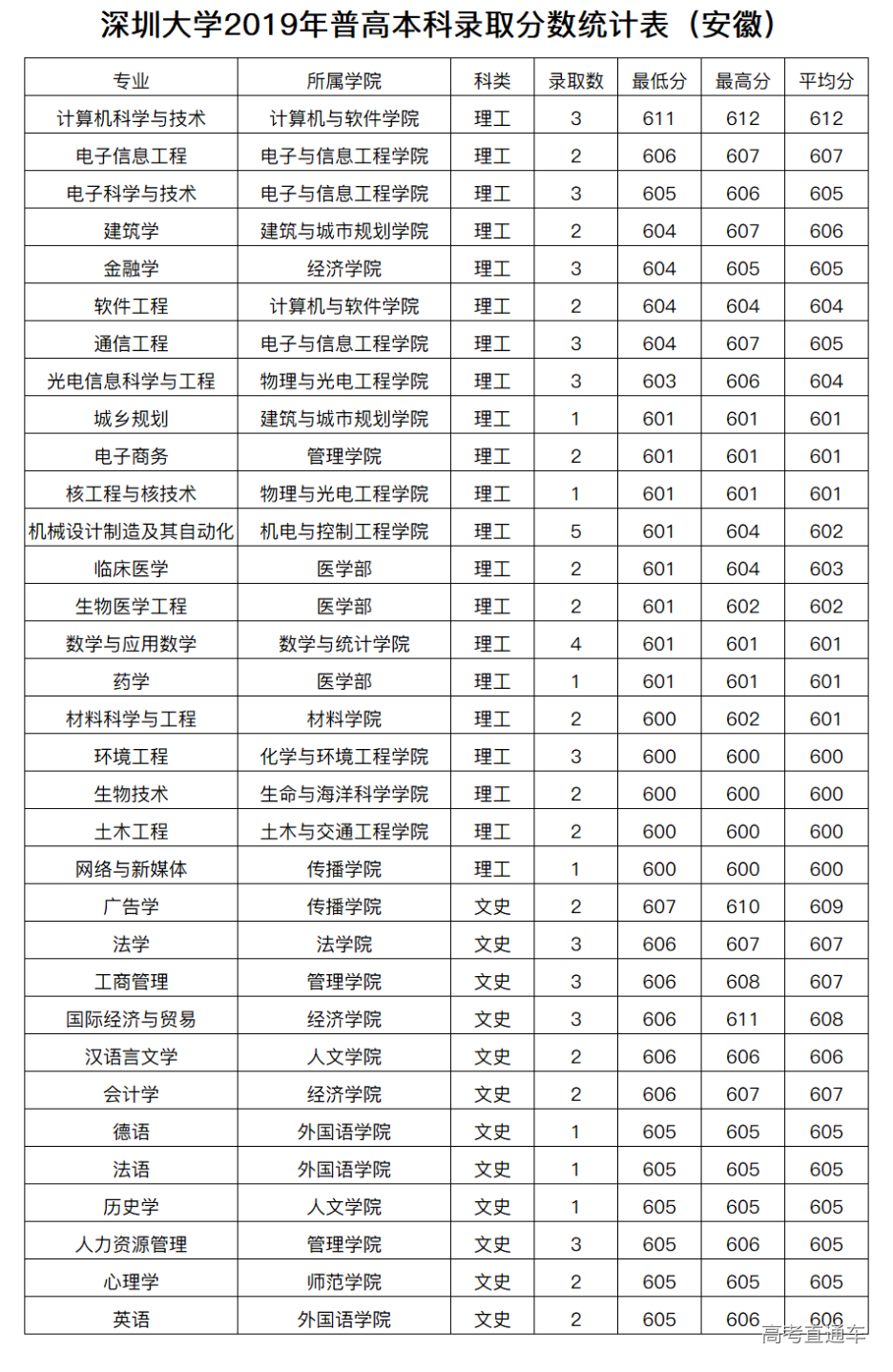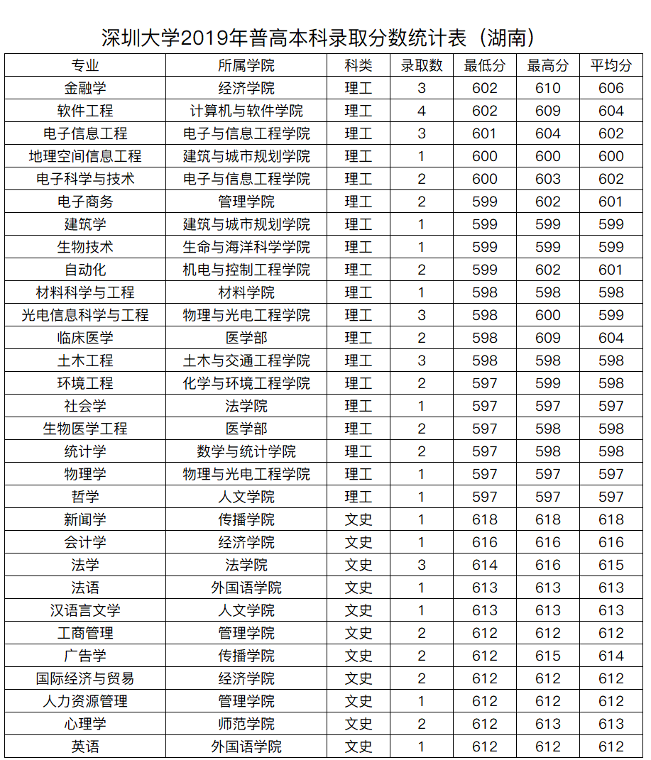 天津 2020年天津首年招生计划表: 1 安徽 历年安徽录取分数线统计: 按科类统计(按投档分统计) 按专业统计(按投档分统计) 2020年安徽招生计划表: 2 北京 历年北京录取分数线统计: 按科类统计(按投档分统计) 按专业统计(按投档分统计) 2020年北京招生计划表: 3 重庆 历年重庆录取分数线统计: 按科类统计(按投档分统计) 按专业统计(按投档分统计) 2020年重庆招生计划表: 4 福建 历年福建录取分数线统计: 按科类统计(按投档分统计) 按专业统计(按投档分统计) 2020年福建招生计划表: 5 甘肃 历年甘肃录取分数线统计: 按科类统计(按投档分统计) 按专业统计(按投档分统计) 2020年甘肃招生计划表: 6 广西 历年广西录取分数线统计: 按科类统计(按投档分统计) 按专业统计(按投档分统计) 2020年广西招生计划表: 7 贵州 历年贵州录取分数线统计: 按科类统计(按投档分统计) 按专业统计(按投档分统计) 2020年贵州招生计划表: 8 海南 历年海南录取分数线统计: 按科类统计(按投档分统计) 按专业统计(按投档分统计) 2020年海南招生计划表: 9 河北 历年河北录取分数线统计: 按科类统计(按投档分统计) 按专业统计(按投档分统计) 2020年河北招生计划表: 10 黑龙江 历年黑龙江录取分数线统计: 按科类统计(按投档分统计) 按专业统计(按投档分统计) 2020年黑龙江招生计划表: 11 河南 历年河南录取分数线统计: 按科类统计(按投档分统计) 按专业统计(按投档分统计) 2020年河南招生计划表: 12 湖北 历年湖北录取分数线统计: 按科类统计(按投档分统计) 按专业统计(按投档分统计) 2020年湖北招生计划表: 13 湖南 历年湖南录取分数线统计: 按科类统计(按投档分统计) 按专业统计(按投档分统计) 2020年湖南招生计划表: 14 江苏 历年江苏录取分数线统计: 按科类统计(按投档分统计) 按专业统计(按投档分统计) 2020年江苏招生计划表: 15 江西 历年江西录取分数线统计: 按科类统计(按投档分统计) 按专业统计(按投档分统计) 2020年江西招生计划表: 16 吉林 历年吉林录取分数线统计: 按科类统计(按投档分统计) 按专业统计(按投档分统计) 2020年吉林招生计划表: 17 辽宁 历年辽宁录取分数线统计: 按科类统计(按投档分统计) 按专业统计(按投档分统计) 2020年辽宁招生计划表: 18 内蒙古 历年内蒙古录取分数线统计: 按科类统计(按投档分统计) 按专业统计(按投档分统计) 2020年内蒙古招生计划表: 19 青海 历年青海录取分数线统计: 按科类统计(按投档分统计) 按专业统计(按投档分统计) 2020年青海招生计划表: 20 陕西 历年陕西录取分数线统计: 按科类统计(按投档分统计) 按专业统计(按投档分统计) 2020年陕西招生计划表: 21 山东 历年山东录取分数线统计: 按科类统计(按投档分统计) 按专业统计(按投档分统计) 2020年山东招生计划表: 22 上海 历年上海录取分数线统计: 按科类统计(按投档分统计) 按专业统计(按投档分统计) 2020年上海招生计划表: 23 山西 历年山西录取分数线统计: 按科类统计(按投档分统计) 按专业统计(按投档分统计) 2020年山西招生计划表: 24 四川 历年四川录取分数线统计: 按科类统计(按投档分统计) 按专业统计(按投档分统计) 2020年四川招生计划表: 25 云南 历年云南录取分数线统计: 按科类统计(按投档分统计) 按专业统计(按投档分统计) 2020年云南招生计划表: 26 浙江 历年浙江录取分数线统计: 按科类统计(按投档分统计) 按专业统计(按投档分统计) 2020年浙江招生计划表: 27 新疆 历年新疆录取分数线统计: 按科类统计(按投档分统计) 按专业统计(按投档分统计) 2020年新疆招生计划表: 深圳大学2020年普通本科 分专业外省招生计划总表 非高考改革省份: 高考改革省份: 备注: 1.计划及科类等以当地省(自治区、直辖市)公布的招生专业目录为准; 2.浙江、上海、北京、天津、山东、海南不分文理; 3.按专业招生,按通识教育与专业教育相结合的大类模式培养,申请毕业前一年有转专业的机会; 4.学费(不含书费)按学分制收费,由课程学分学费和专业学费两部分组成,每学期学分学费按学生实际修读的课程总学分计算。