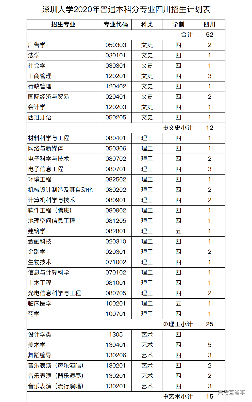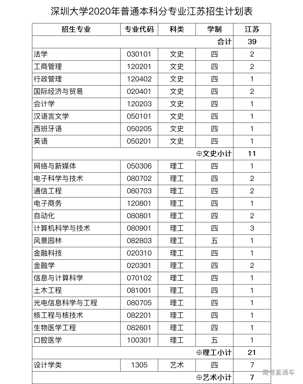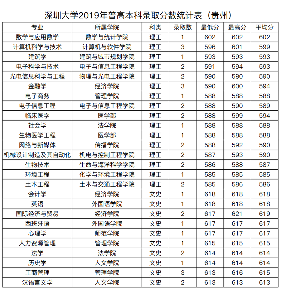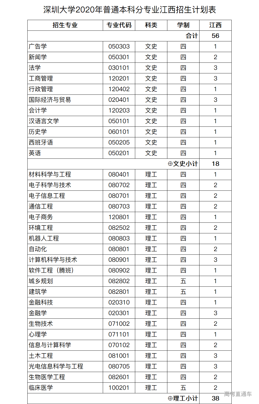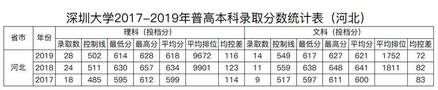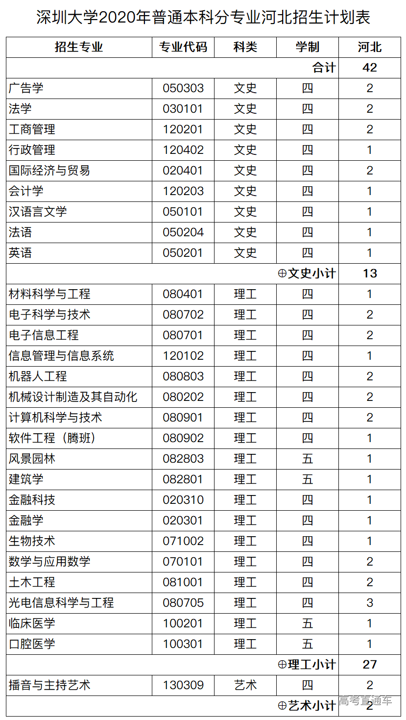 天津 2020年天津首年招生计划表: 1 安徽 历年安徽录取分数线统计: 按科类统计(按投档分统计) 按专业统计(按投档分统计) 2020年安徽招生计划表: 2 北京 历年北京录取分数线统计: 按科类统计(按投档分统计) 按专业统计(按投档分统计) 2020年北京招生计划表: 3 重庆 历年重庆录取分数线统计: 按科类统计(按投档分统计) 按专业统计(按投档分统计) 2020年重庆招生计划表: 4 福建 历年福建录取分数线统计: 按科类统计(按投档分统计) 按专业统计(按投档分统计) 2020年福建招生计划表: 5 甘肃 历年甘肃录取分数线统计: 按科类统计(按投档分统计) 按专业统计(按投档分统计) 2020年甘肃招生计划表: 6 广西 历年广西录取分数线统计: 按科类统计(按投档分统计) 按专业统计(按投档分统计) 2020年广西招生计划表: 7 贵州 历年贵州录取分数线统计: 按科类统计(按投档分统计) 按专业统计(按投档分统计) 2020年贵州招生计划表: 8 海南 历年海南录取分数线统计: 按科类统计(按投档分统计) 按专业统计(按投档分统计) 2020年海南招生计划表: 9 河北 历年河北录取分数线统计: 按科类统计(按投档分统计) 按专业统计(按投档分统计) 2020年河北招生计划表: 10 黑龙江 历年黑龙江录取分数线统计: 按科类统计(按投档分统计) 按专业统计(按投档分统计) 2020年黑龙江招生计划表: 11 河南 历年河南录取分数线统计: 按科类统计(按投档分统计) 按专业统计(按投档分统计) 2020年河南招生计划表: 12 湖北 历年湖北录取分数线统计: 按科类统计(按投档分统计) 按专业统计(按投档分统计) 2020年湖北招生计划表: 13 湖南 历年湖南录取分数线统计: 按科类统计(按投档分统计) 按专业统计(按投档分统计) 2020年湖南招生计划表: 14 江苏 历年江苏录取分数线统计: 按科类统计(按投档分统计) 按专业统计(按投档分统计) 2020年江苏招生计划表: 15 江西 历年江西录取分数线统计: 按科类统计(按投档分统计) 按专业统计(按投档分统计) 2020年江西招生计划表: 16 吉林 历年吉林录取分数线统计: 按科类统计(按投档分统计) 按专业统计(按投档分统计) 2020年吉林招生计划表: 17 辽宁 历年辽宁录取分数线统计: 按科类统计(按投档分统计) 按专业统计(按投档分统计) 2020年辽宁招生计划表: 18 内蒙古 历年内蒙古录取分数线统计: 按科类统计(按投档分统计) 按专业统计(按投档分统计) 2020年内蒙古招生计划表: 19 青海 历年青海录取分数线统计: 按科类统计(按投档分统计) 按专业统计(按投档分统计) 2020年青海招生计划表: 20 陕西 历年陕西录取分数线统计: 按科类统计(按投档分统计) 按专业统计(按投档分统计) 2020年陕西招生计划表: 21 山东 历年山东录取分数线统计: 按科类统计(按投档分统计) 按专业统计(按投档分统计) 2020年山东招生计划表: 22 上海 历年上海录取分数线统计: 按科类统计(按投档分统计) 按专业统计(按投档分统计) 2020年上海招生计划表: 23 山西 历年山西录取分数线统计: 按科类统计(按投档分统计) 按专业统计(按投档分统计) 2020年山西招生计划表: 24 四川 历年四川录取分数线统计: 按科类统计(按投档分统计) 按专业统计(按投档分统计) 2020年四川招生计划表: 25 云南 历年云南录取分数线统计: 按科类统计(按投档分统计) 按专业统计(按投档分统计) 2020年云南招生计划表: 26 浙江 历年浙江录取分数线统计: 按科类统计(按投档分统计) 按专业统计(按投档分统计) 2020年浙江招生计划表: 27 新疆 历年新疆录取分数线统计: 按科类统计(按投档分统计) 按专业统计(按投档分统计) 2020年新疆招生计划表: 深圳大学2020年普通本科 分专业外省招生计划总表 非高考改革省份: 高考改革省份: 备注: 1.计划及科类等以当地省(自治区、直辖市)公布的招生专业目录为准; 2.浙江、上海、北京、天津、山东、海南不分文理; 3.按专业招生,按通识教育与专业教育相结合的大类模式培养,申请毕业前一年有转专业的机会; 4.学费(不含书费)按学分制收费,由课程学分学费和专业学费两部分组成,每学期学分学费按学生实际修读的课程总学分计算。