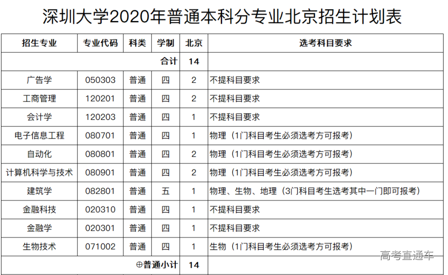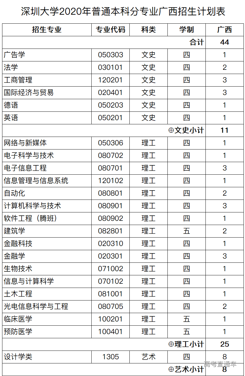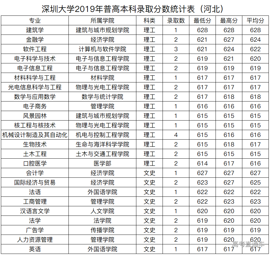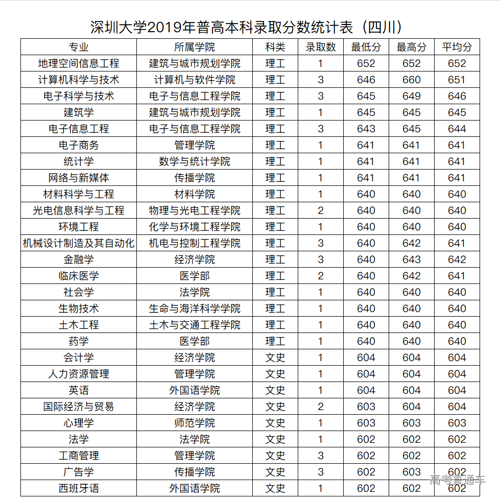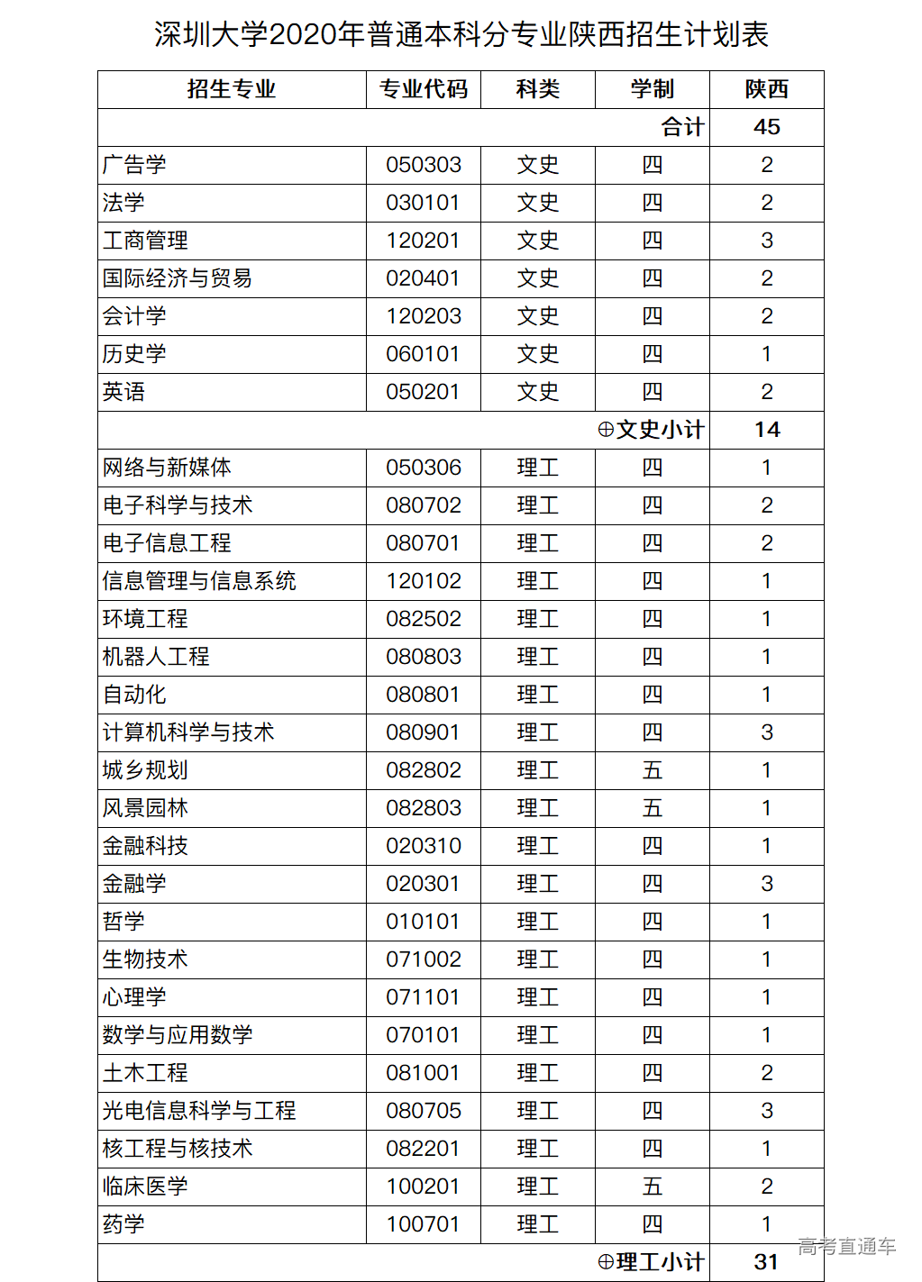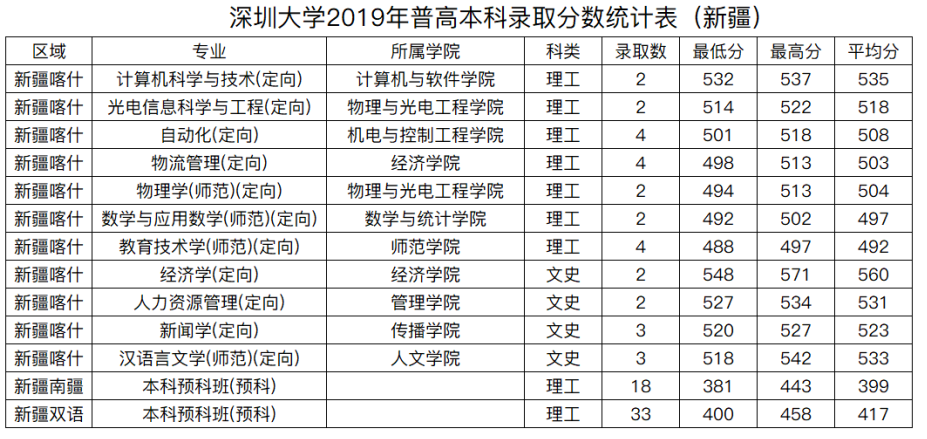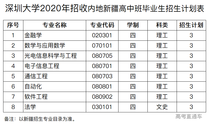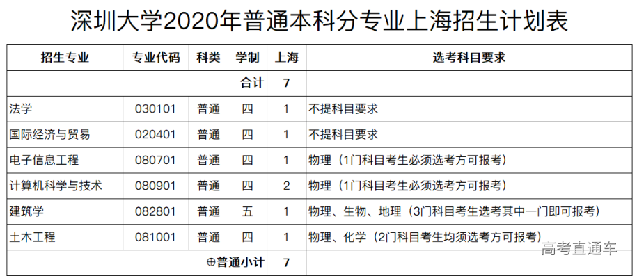 天津 2020年天津首年招生计划表: 1 安徽 历年安徽录取分数线统计: 按科类统计(按投档分统计) 按专业统计(按投档分统计) 2020年安徽招生计划表: 2 北京 历年北京录取分数线统计: 按科类统计(按投档分统计) 按专业统计(按投档分统计) 2020年北京招生计划表: 3 重庆 历年重庆录取分数线统计: 按科类统计(按投档分统计) 按专业统计(按投档分统计) 2020年重庆招生计划表: 4 福建 历年福建录取分数线统计: 按科类统计(按投档分统计) 按专业统计(按投档分统计) 2020年福建招生计划表: 5 甘肃 历年甘肃录取分数线统计: 按科类统计(按投档分统计) 按专业统计(按投档分统计) 2020年甘肃招生计划表: 6 广西 历年广西录取分数线统计: 按科类统计(按投档分统计) 按专业统计(按投档分统计) 2020年广西招生计划表: 7 贵州 历年贵州录取分数线统计: 按科类统计(按投档分统计) 按专业统计(按投档分统计) 2020年贵州招生计划表: 8 海南 历年海南录取分数线统计: 按科类统计(按投档分统计) 按专业统计(按投档分统计) 2020年海南招生计划表: 9 河北 历年河北录取分数线统计: 按科类统计(按投档分统计) 按专业统计(按投档分统计) 2020年河北招生计划表: 10 黑龙江 历年黑龙江录取分数线统计: 按科类统计(按投档分统计) 按专业统计(按投档分统计) 2020年黑龙江招生计划表: 11 河南 历年河南录取分数线统计: 按科类统计(按投档分统计) 按专业统计(按投档分统计) 2020年河南招生计划表: 12 湖北 历年湖北录取分数线统计: 按科类统计(按投档分统计) 按专业统计(按投档分统计) 2020年湖北招生计划表: 13 湖南 历年湖南录取分数线统计: 按科类统计(按投档分统计) 按专业统计(按投档分统计) 2020年湖南招生计划表: 14 江苏 历年江苏录取分数线统计: 按科类统计(按投档分统计) 按专业统计(按投档分统计) 2020年江苏招生计划表: 15 江西 历年江西录取分数线统计: 按科类统计(按投档分统计) 按专业统计(按投档分统计) 2020年江西招生计划表: 16 吉林 历年吉林录取分数线统计: 按科类统计(按投档分统计) 按专业统计(按投档分统计) 2020年吉林招生计划表: 17 辽宁 历年辽宁录取分数线统计: 按科类统计(按投档分统计) 按专业统计(按投档分统计) 2020年辽宁招生计划表: 18 内蒙古 历年内蒙古录取分数线统计: 按科类统计(按投档分统计) 按专业统计(按投档分统计) 2020年内蒙古招生计划表: 19 青海 历年青海录取分数线统计: 按科类统计(按投档分统计) 按专业统计(按投档分统计) 2020年青海招生计划表: 20 陕西 历年陕西录取分数线统计: 按科类统计(按投档分统计) 按专业统计(按投档分统计) 2020年陕西招生计划表: 21 山东 历年山东录取分数线统计: 按科类统计(按投档分统计) 按专业统计(按投档分统计) 2020年山东招生计划表: 22 上海 历年上海录取分数线统计: 按科类统计(按投档分统计) 按专业统计(按投档分统计) 2020年上海招生计划表: 23 山西 历年山西录取分数线统计: 按科类统计(按投档分统计) 按专业统计(按投档分统计) 2020年山西招生计划表: 24 四川 历年四川录取分数线统计: 按科类统计(按投档分统计) 按专业统计(按投档分统计) 2020年四川招生计划表: 25 云南 历年云南录取分数线统计: 按科类统计(按投档分统计) 按专业统计(按投档分统计) 2020年云南招生计划表: 26 浙江 历年浙江录取分数线统计: 按科类统计(按投档分统计) 按专业统计(按投档分统计) 2020年浙江招生计划表: 27 新疆 历年新疆录取分数线统计: 按科类统计(按投档分统计) 按专业统计(按投档分统计) 2020年新疆招生计划表: 深圳大学2020年普通本科 分专业外省招生计划总表 非高考改革省份: 高考改革省份: 备注: 1.计划及科类等以当地省(自治区、直辖市)公布的招生专业目录为准; 2.浙江、上海、北京、天津、山东、海南不分文理; 3.按专业招生,按通识教育与专业教育相结合的大类模式培养,申请毕业前一年有转专业的机会; 4.学费(不含书费)按学分制收费,由课程学分学费和专业学费两部分组成,每学期学分学费按学生实际修读的课程总学分计算。