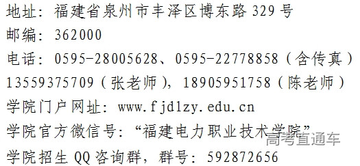 为深入实施招生“阳光工程”,规范招生信息公开,维护考生合法权益,确保学院2024年高职分类招考招生工作公平、公正、平稳、有序开展,根据《福建省教育厅关于做好2024年福建省高职院校分类考试招生有关工作的通知》等文件精神,结合本院实际,制定本章程。 一、学院简介 福建电力职业技术学院是经福建省人民政府批准组建的一所公办普通高等职业技术学院。学院以全日制高职教育为主,同时开展成人教育、职工培训、技能鉴定等工作。学院由国网福建省电力有限公司举办,业务由福建省教育厅和国网福建省电力有限公司共同管理。 学院全称:福建电力职业技术学院 院校代码:12628 学院地址:福建省泉州市丰泽区博东路329号 (邮编362000) 院校层次:专科,学制三年 办学类型:公办全日制普通高等职业教育 二、招生计划及要求 严格执行省教育厅审批下达的学院2024年高职分类招考的专业计划,招生专业及招生计划数在考试院发布的招生资讯、学院招生信息网及其它招生宣传资料均有公布。 招生对象:2024年普通高中应往届毕业班学生、2024届中等职业学校应往届毕业考生、技工学校或同等学力人员。 考生身体健康状况要求按教育部、卫生部、残疾人联合会印发《普通高等学校招生体检工作指导意见》(教学〔2003〕3号)和教育部办公厅、卫生部办公厅《关于普通高等学校招生学生入学身体检查取消乙肝项目检测有关问题的通知》(教学厅〔2010〕2号)的要求执行。肢体残疾,色盲、色弱、听觉等不合格者建议谨慎报考电力相关专业,可能影响在电力等特种工种就业。 三、录取原则 1.录取执行福建省招生委员会制定的录取政策及相关规定,本着公平、公正、公开的原则,择优录取。 2.对享受加分政策的考生,执行福建省教育厅相关文件规定执行。 3.录取规则: (1)2024年我院所有招生专业均采用线上投档录取。 (2)所有专业均按教育厅要求实行“按专业志愿平行投档模式”、从高分到低分择优录取,考生成绩应达到省定的最低录取控制线。 (3)各专业的招生计划数严格按照教育厅下达的高职分类招生计划数进行录取。 4.被我院录取的考生,应按录取通知书规定时间携带录取通知书、身份证、准考证等相关资料到校办理入学手续。因故不能按期入学者,应当向学院教务处办理请假手续。报到之日起两周内不报到且无正当理由的,视为自动放弃入学资格。 5.我院部分专业采取大类招生,新生入学后公布专业分流办法,学生在第一学期后按分流办法进行专业选择,第二学期开始按分流后专业学习。 四、收费标准和退费办法 根据福建省物价局、福建省、财政厅(闽价费〔2012〕356号)文核定,专业学费标准为6000元/人·年。住宿费按当地物价主管部门核定的标准收取。 退费办法按《关于规范高等学校和中等职业学校收费管理工作有关问题的通知》(闽价费〔2005〕 435号)第八款“关于学费、住宿费和代办费的清退问题”执行。 五、学历证书 在学院规定年限内,修完人才培养方案规定内容,符合人才培养方案中的毕业标准要求,准予毕业,发给毕业证书。毕业证书可在中国高等教育学生信息网上查询认证,颁发毕业证书学校为福建电力职业技术学院。 六、监督及申诉、举报渠道 招生录取过程严格执行国家招生政策、规定,自觉接受上级主管部门和社会监督,在学院纪检部门的监督下进行。考生及其家长和其他人员如对录取过程和结果需要咨询的,可拨打学院招生办公室电话0595-28005628。如果对招生录取结果有异议的,可向学院纪检部门申诉、举报,申诉和举报电话:0595-68098025。 七、奖、助、贷制度及勤工俭学 1.设立学业奖学金。学院每学期开展学业奖学金评比,奖励品学兼优的学生,其中一等1000元/人·学期、二等600元/人·学期、三等300元/人·学期。同时执行国家奖学金评审制度,国家奖学金8000元/年·人。 2.评审国家助学金。符合条件学生可申请国家助学金,其中:认定为特别困难的,发放助学金4500元/学年·人,认定为困难的学生,发放助学金2800元/人·年。家庭经济特殊困难的学生学院将视具体情况给予相应补助。同时,学院执行国家励志奖学金评审制度,符合条件的品学兼优的家庭经济困难学生经评审获评可获得国家励志奖学金5000元/人·年。 3.落实助学贷款制度。家庭经济困难学生可申请生源地信用助学贷款,每人每学年不超过8000元,在校期间贷款利息由国家承担。根据《教育部财政部中国人民银行银保监会关于调整完善国家助学贷款有关政策的通知》(教财〔2020〕4号文件),助学贷款还款期限原则上按学制加15年确定,最长不超过22年。生源地信用助学贷款办理时间一般为每年7月至10月,新生须凭本人有效身份证件、录取通知书和相关材料(具体材料根据贷款银行规定执行)到各县(市、区)教育局资助中心办理。 4.设立校内勤工助学岗位。学院为家庭经济困难学生提供勤工助学岗位。 5.筹集社会助学资金。学院积极筹集社会助学金,资助部分家庭经济困难学生顺利完成学业。 八、联系方式 九、本章程自公布之日起执行,适用于参加2024年高职院校分类考试的考生,解释权为本院招生办公室。