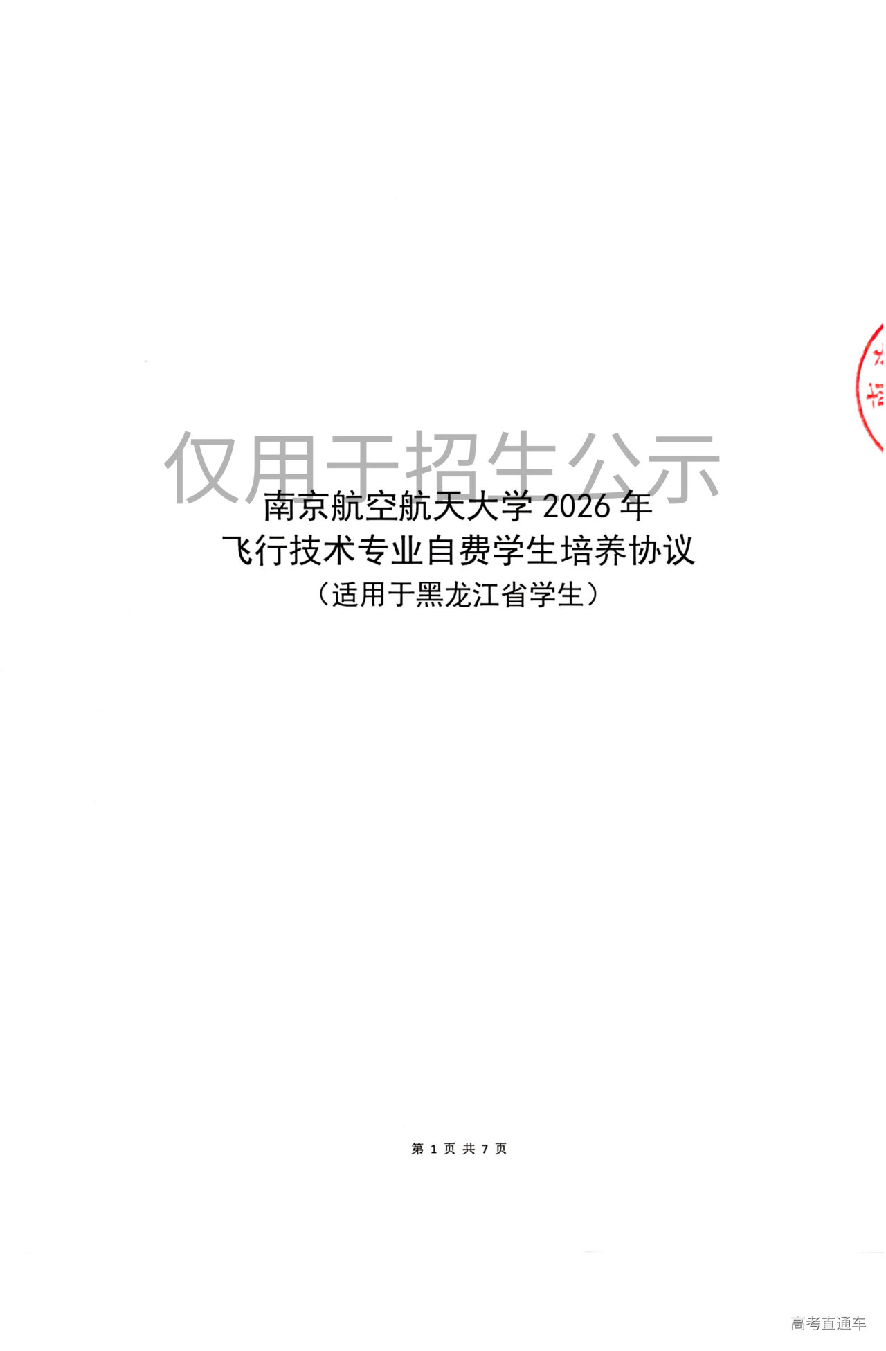 南京航空航天大学 2026 年飞行技术专业自费学生培养协议(适用于黑龙江省学生).pdf