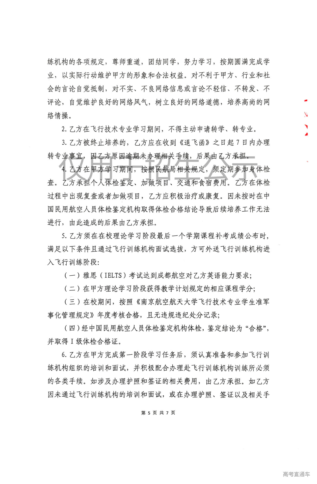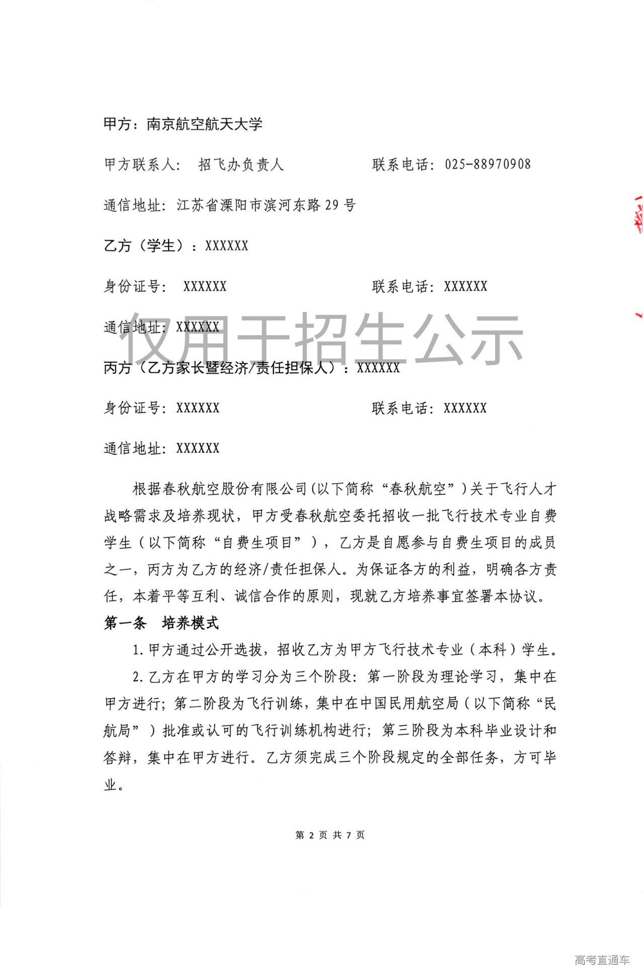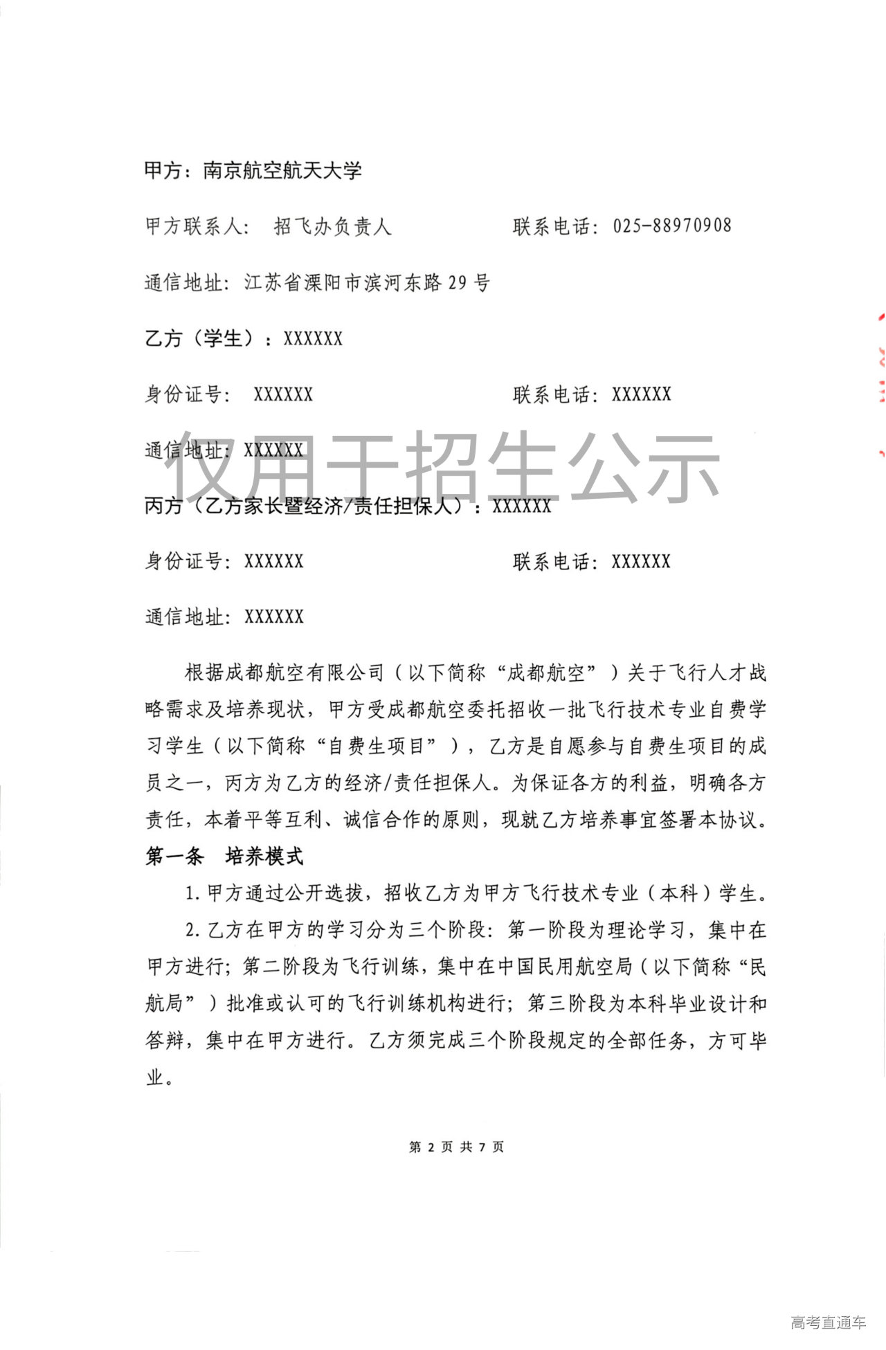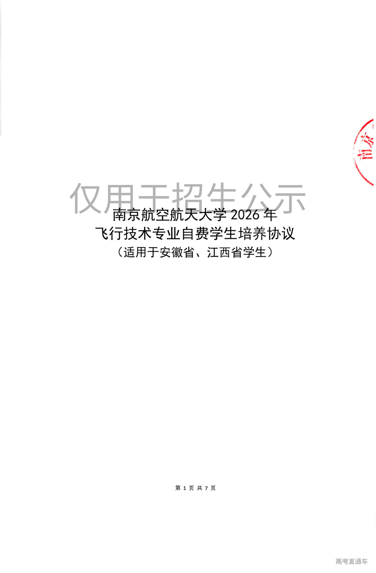 南京航空航天大学 2026 年飞行技术专业自费学生培养协议(适用于安徽省、江西省学生).pdf