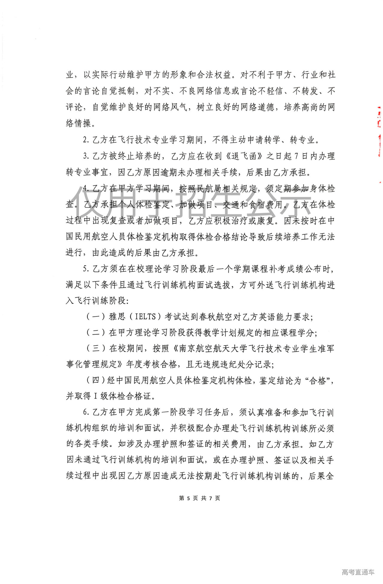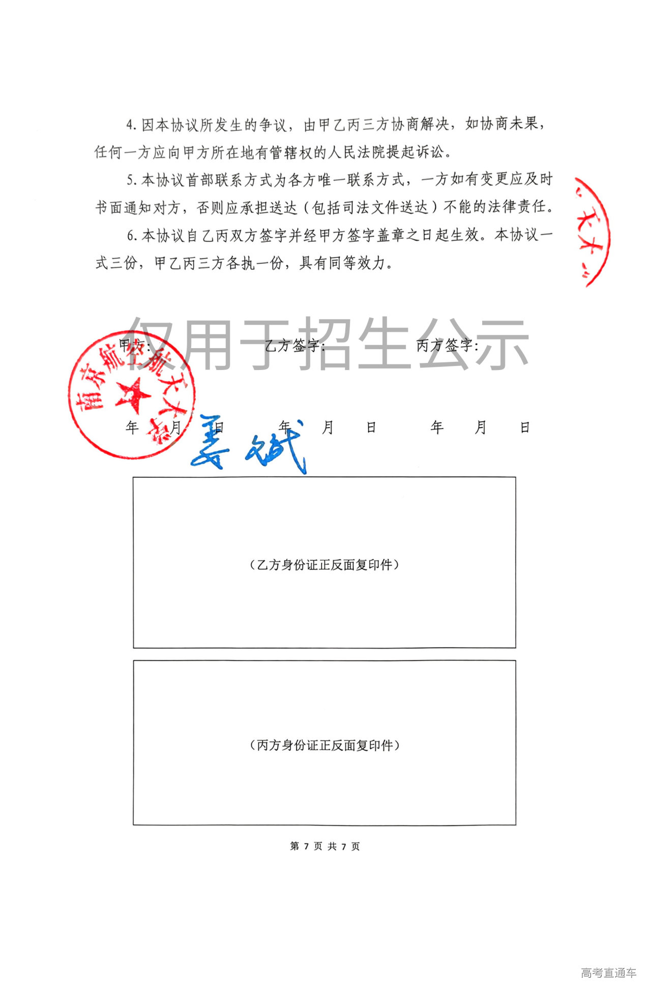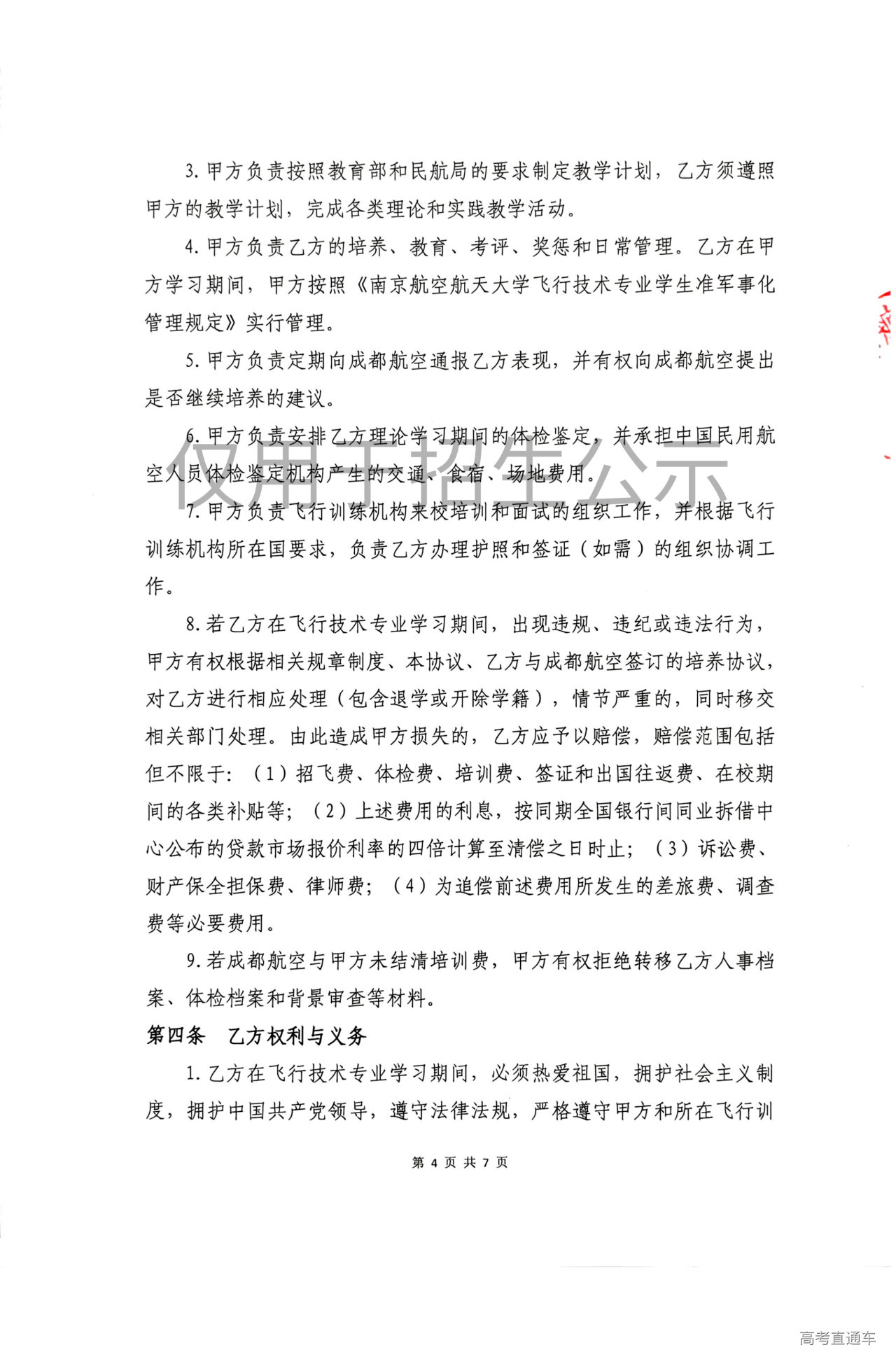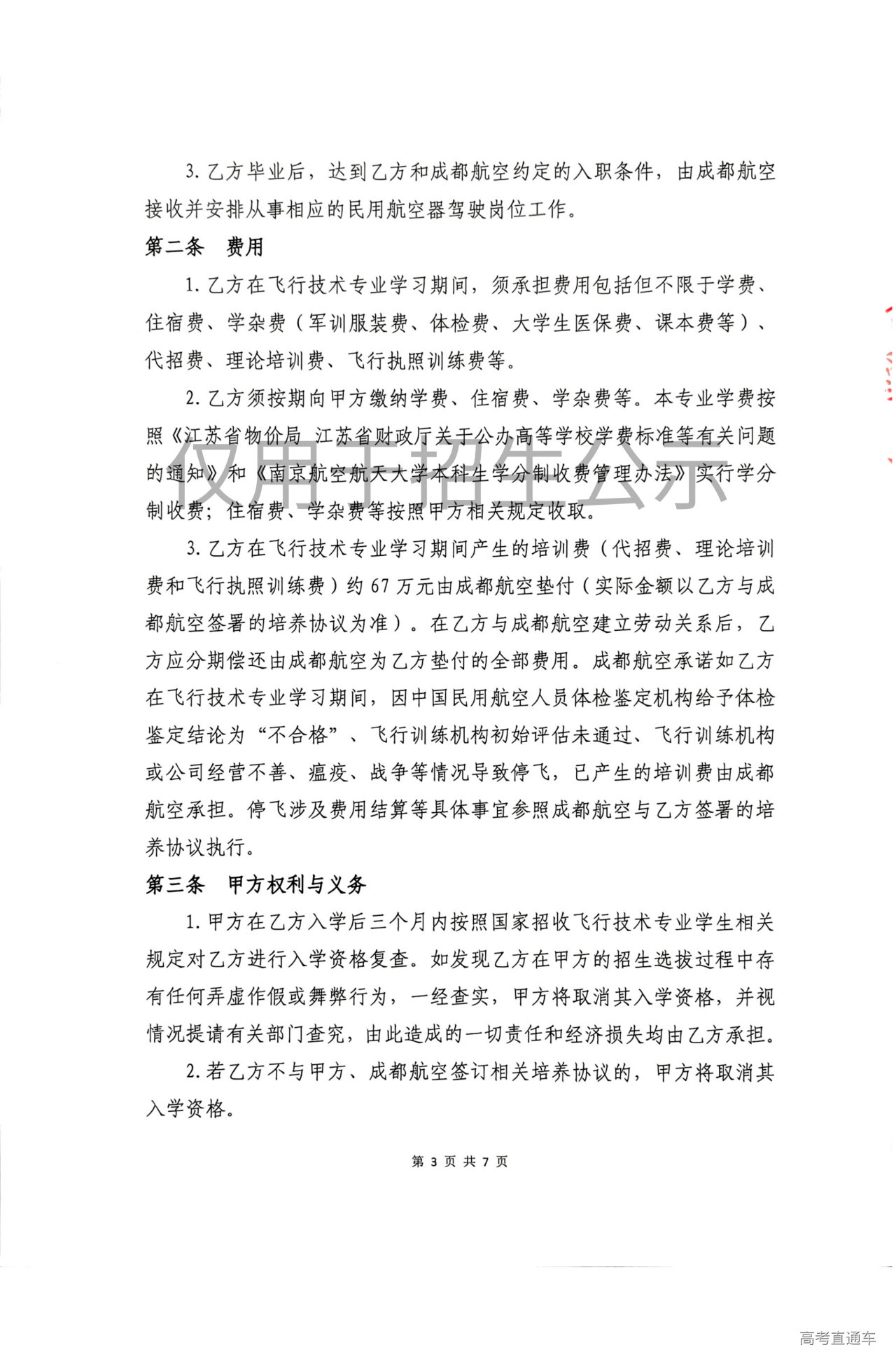 南京航空航天大学 2026 年飞行技术专业自费学生培养协议(适用于安徽省、江西省学生).pdf