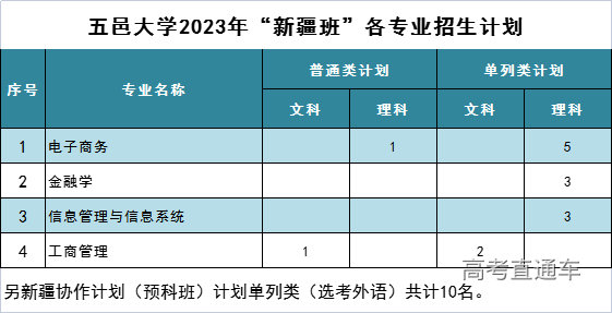 四、“新疆班”及新疆协作计划(预科班)招生计划: