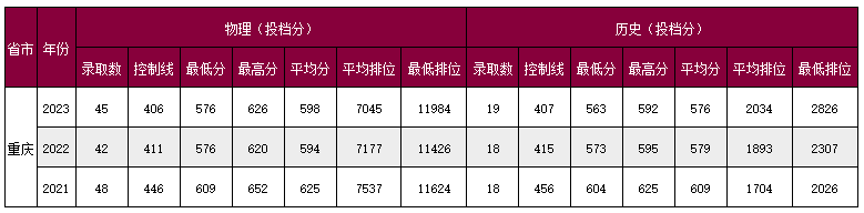 往年录取统计 (以上统计不含中外合作办学专业。) 点击查看大图