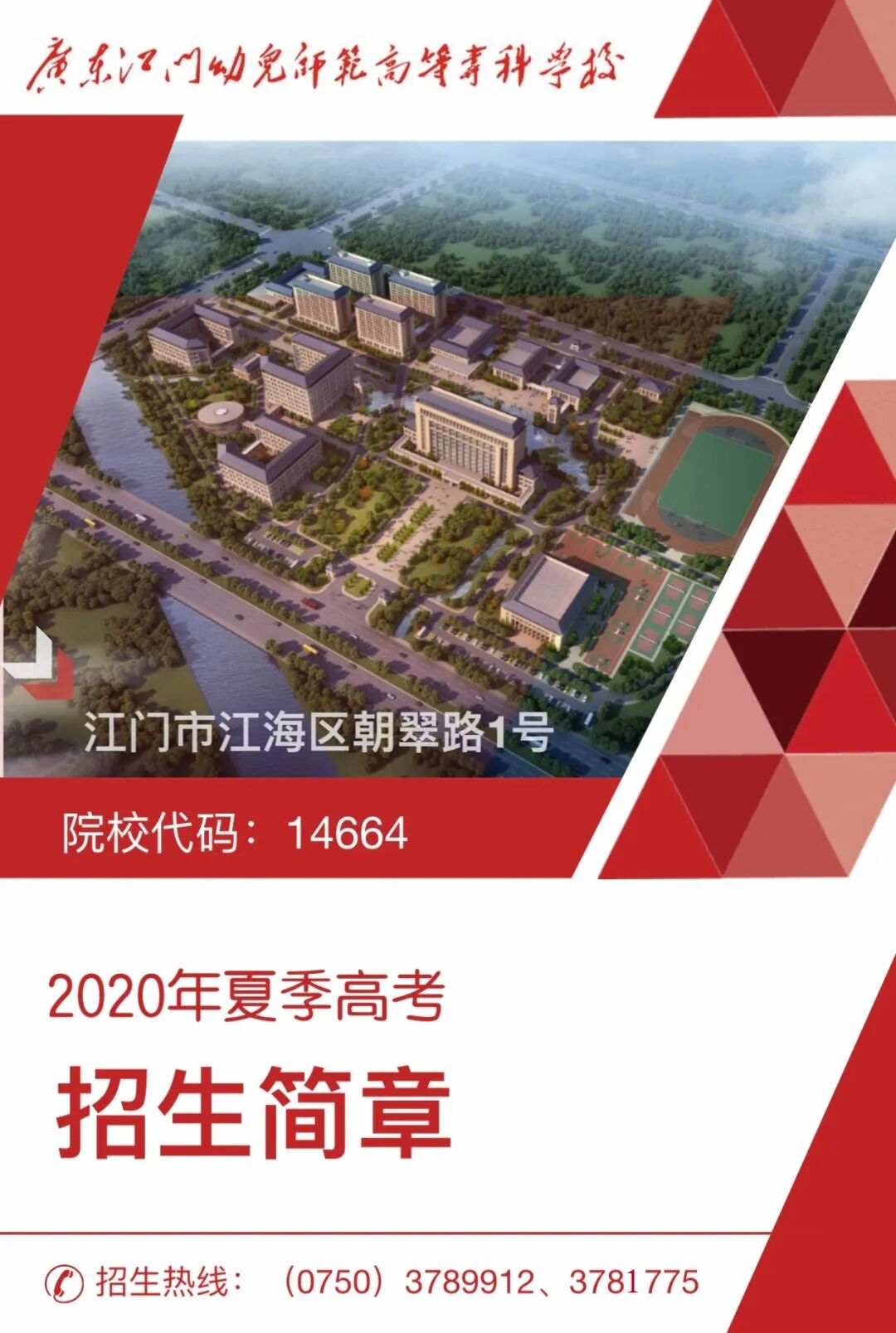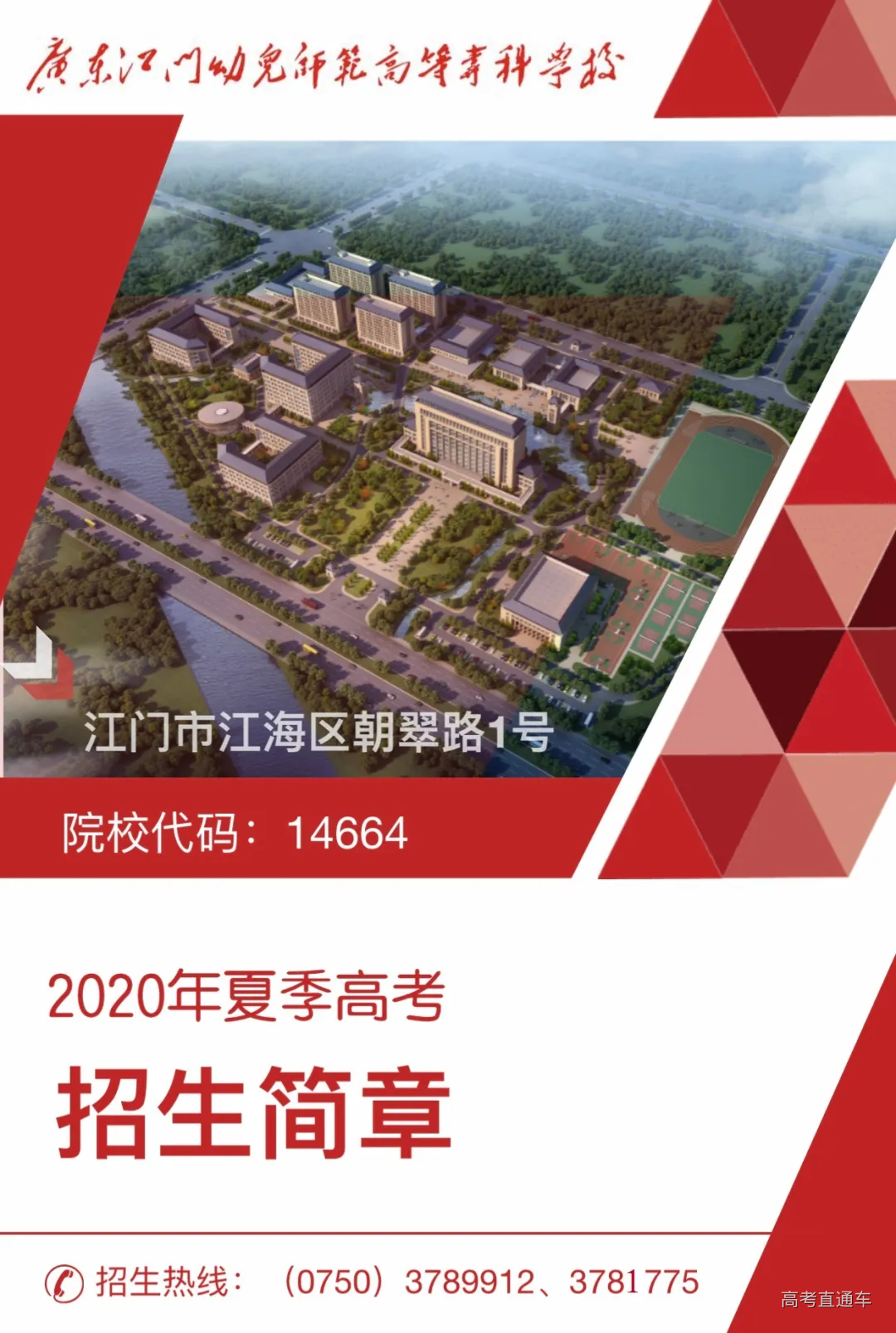 学校简介 广东江门幼儿师范高等专科学校是江门市人民政府举办、广东省人民政府批准、国家教育部备案的一所全日制公立普通高等学校, 是珠江三角洲地区唯一一所幼儿师范高等专科学校。 学校坐落于粤港澳大湾区的中国第一侨乡江门市江海区朝翠路1号,占地面积300亩,毗邻龙溪湖公园,空气清新,风景优美,交通便利。学校按7500人规模设计,初期办学规模3000人,纸质图书16余万册,科研仪器设备完善,信息化程度高。现开设有学前教育、音乐教育、美术教育、舞蹈教育、体育教育、英语教育等六个专业,建有各类实训室324个,配备直属幼儿园1所,校外见实习基地54个,可以满足各专业学生实践实训教学需求。 学校立足粤港澳大湾区,服务“一带一路”人才战略,专业优势突出,学、研特色鲜明,正朝着“将学校建设成为能提供示范作用的幼儿师范高等专科学校”的奋斗目标迈进。 办学理念 | 仁爱 博雅 力行 创新 校训 | 厚德 笃学 崇教 有为 奖学助学 4.广东省家庭经济困难新生资助: 学生本人及其家庭所能筹集到的资金难以支付学费,可附上相关部门证明进行申请。每生最高不超过6000元。 招生计划 学校根据社会对教育人才的需要,2020年夏季高考招收学前教育、音乐教育、美术教育、舞蹈教育、体育教育、英语教育师范类专业共6个,计划招生共732人。各专业招生计划如下表: 费用标准 交通指南 ■ 自驾车的,可导航至“江门高新区龙溪湖公园”即可到江门幼高专学校。 专业介绍 学前教育 培养目标 培养具有坚定的政治信念,德、智、体、美、劳全面发展,具有良好的师德、科学人文素养,较强的创新意识、创新精神和专业能力,适应学前教育发展需要的高素质专门人才。 主干课程 学前儿童卫生与保健、学前儿童发展心理学、学前教育学、幼儿园教育活动设计与指导、幼儿游戏与指导、幼儿园课程概论、幼儿园班级管理、幼儿园教育环境创设等。 音乐教育 培养目标 培养具有坚定的政治信念,德、智、体、美、劳全面发展,适应音乐教育发展需要,具有良好的师德、科学人文素养,较强的创新意识、专业能力和创新精神的需要的高素质专科层次音乐教育专门人才。 主干课程 声乐、合唱指挥与排练、中外音乐简史与名作欣赏、钢琴即兴伴奏与歌曲弹唱、儿童节奏乐与创编、儿童音乐理论与教学、舞蹈、儿童音乐剧与舞台实践。 美术教育 培养目标 培养具有坚定的政治信念,德、智、体、美、劳全面发展,适应美术教育发展需要,具有良好的师德、科学人文素养,较强的创新意识、专业能力和创新精神的需要的高素质专科层次美术教育专门人才。 主干课程 中国画基础与创作、版画基础与创作、平面设计与应用、插画艺术设计、幼儿园环境设计、毕业创作。 体育教育 培养目标 本专业培养思想政治坚定,德智体美劳全面发展,能适应儿童体育教育发展需要,具有良好思想素质、职业道德、较强的现代意识、专业能力和创新精神的高素质专科层次学前体育教育专门人才。 主干课程 体育概论、学前教育学、运动生理学、儿童发展与教育心理学、体育保健学、幼儿健康测量与评价、篮球、足球、健美操、武术等。 英语教育 培养目标 本专业培养思想政治坚定,德智体美劳全面发展,能适应儿童英语语言教育发展需要,具有良好思想素质、职业道德、较强的现代意识、专业能力和创新精神的高素质专科层次学前英语教育专门人才。 主干课程 英语语音、英语语法、英语精读、英语泛读、听力、口语、翻译、写作、英语教学法、大学语文、计算机、大学体育、舞蹈、音乐、美术、政治理论课、职业生涯规划、就业与创业指导,心理健康教育、学前教学理论与实践、教育学、心理学、现代教育技术等。