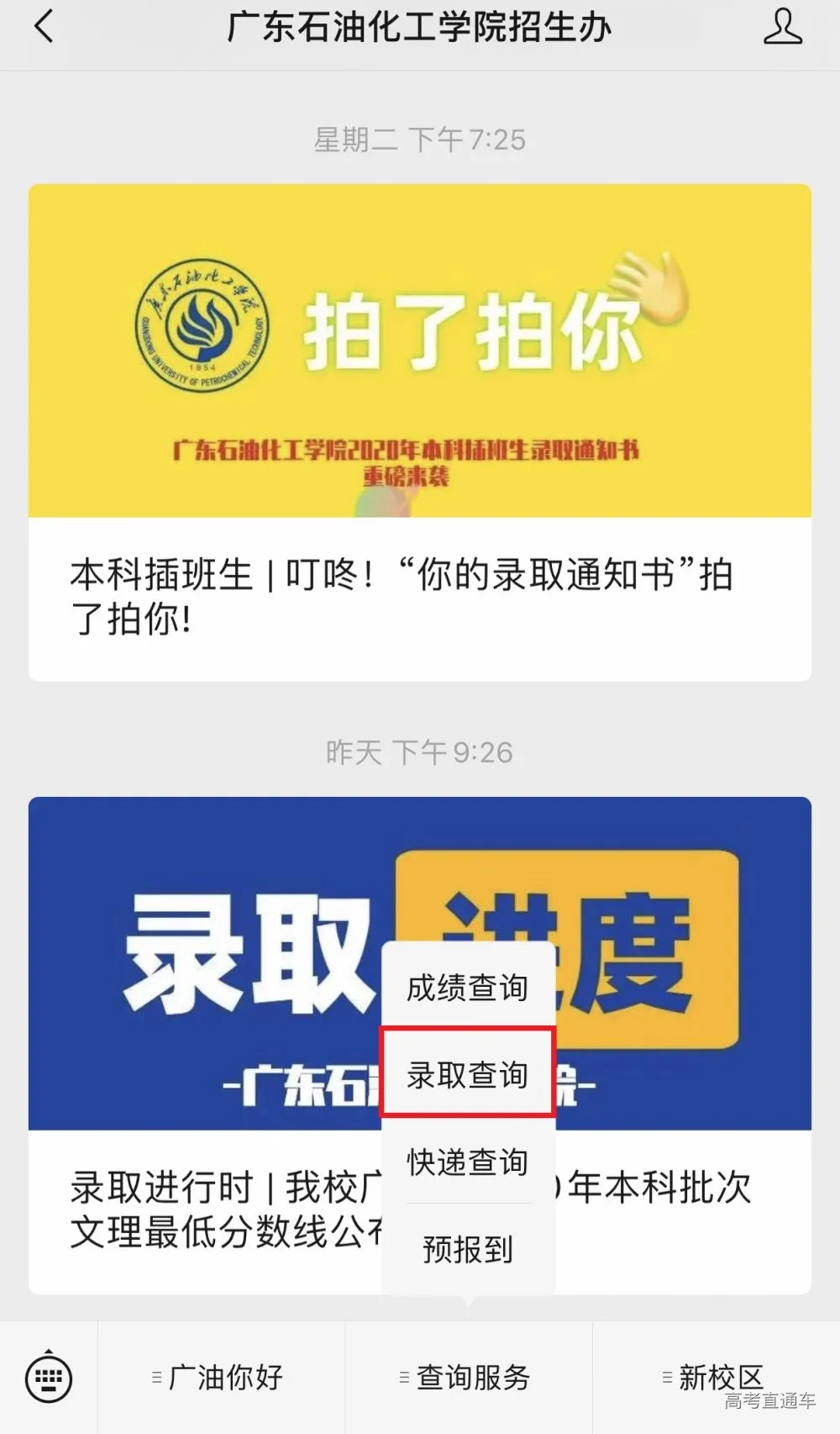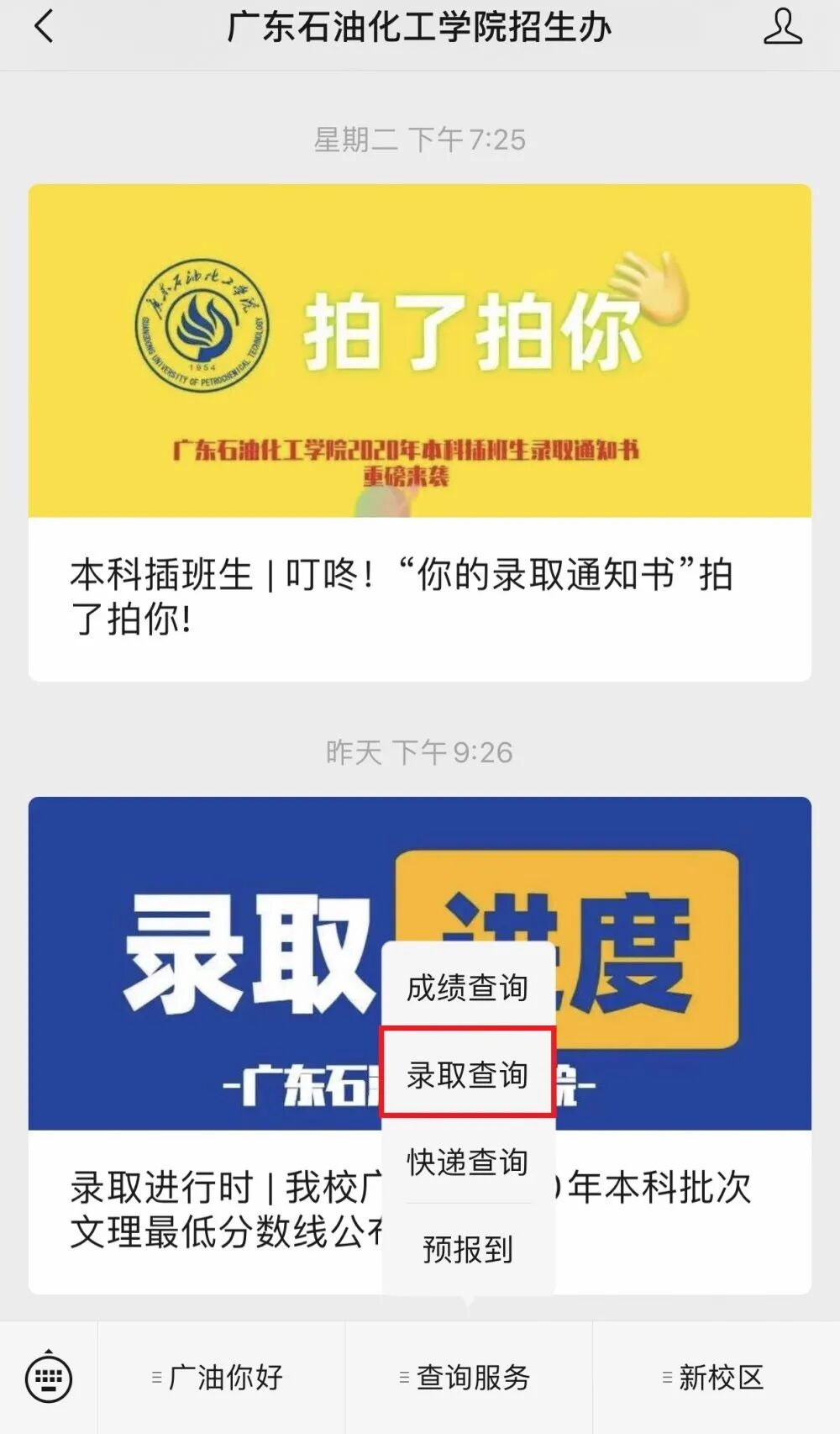我校2020年广东省本科和省外部分科类的录取工作已完成,录取结果可通过我办微信公众号或我校招生信息网进行查询。