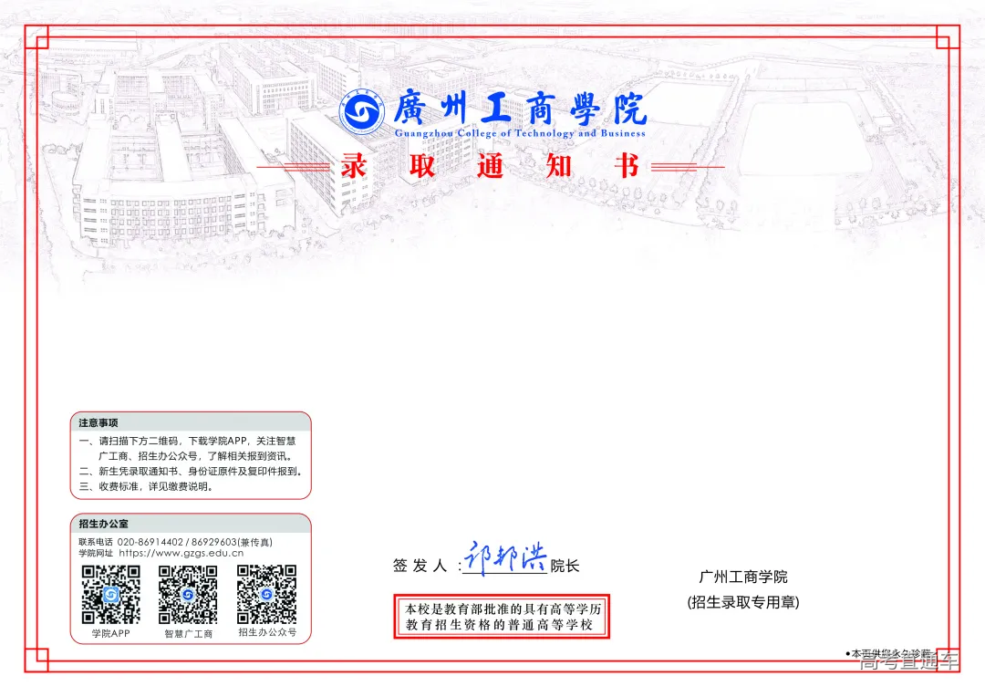 广州工商学院2020年本科录取通知书
