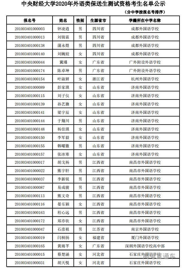 ①报名系统中打印的准考证;②经中学签字、盖章的《中央财经大学2020年外语类保送生申请表》;③获奖证书等相关证明材料原件;④身份证原件;⑤报名系统中提交的其他报名材料的原件。