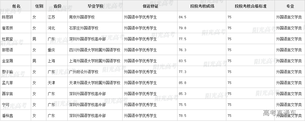 香港中文大学(深圳)2020年外语类保送生拟录取名单公示