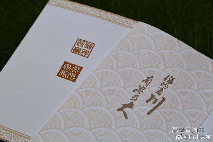 底纹金沙或雅白,校名古铜烫雅金,惊艳是第一感受,内涵是不变之本!川大录取通知书看似一件礼物,其实更像一则敦促,荣光理所应当,分量不能遗忘!我们等你来!