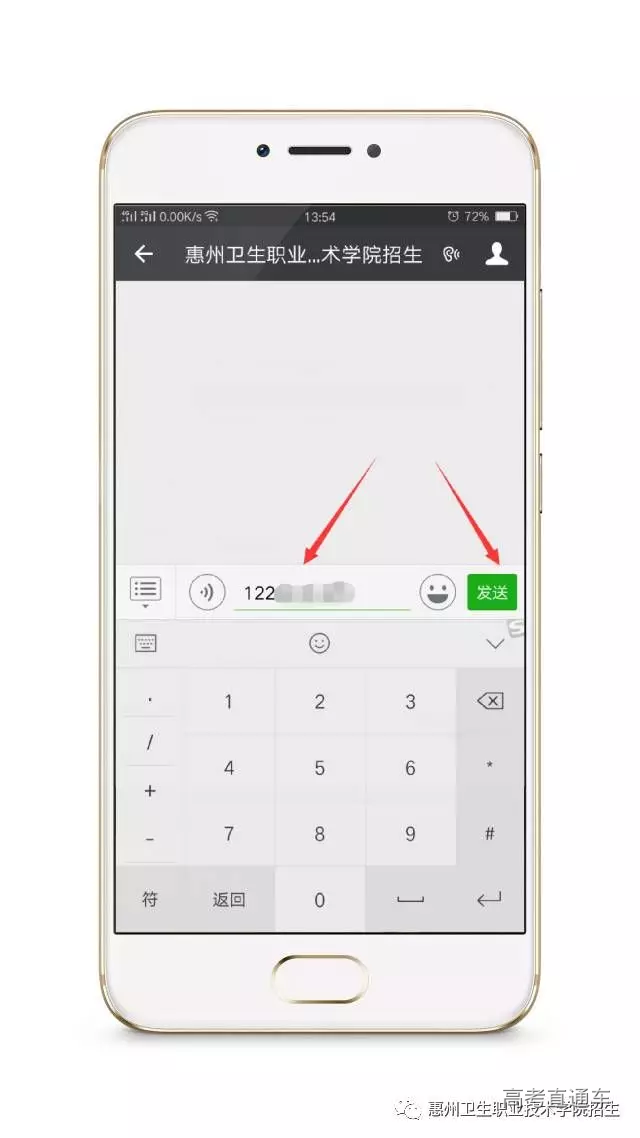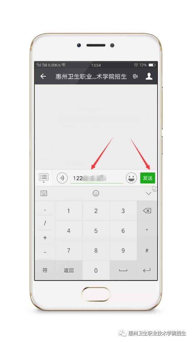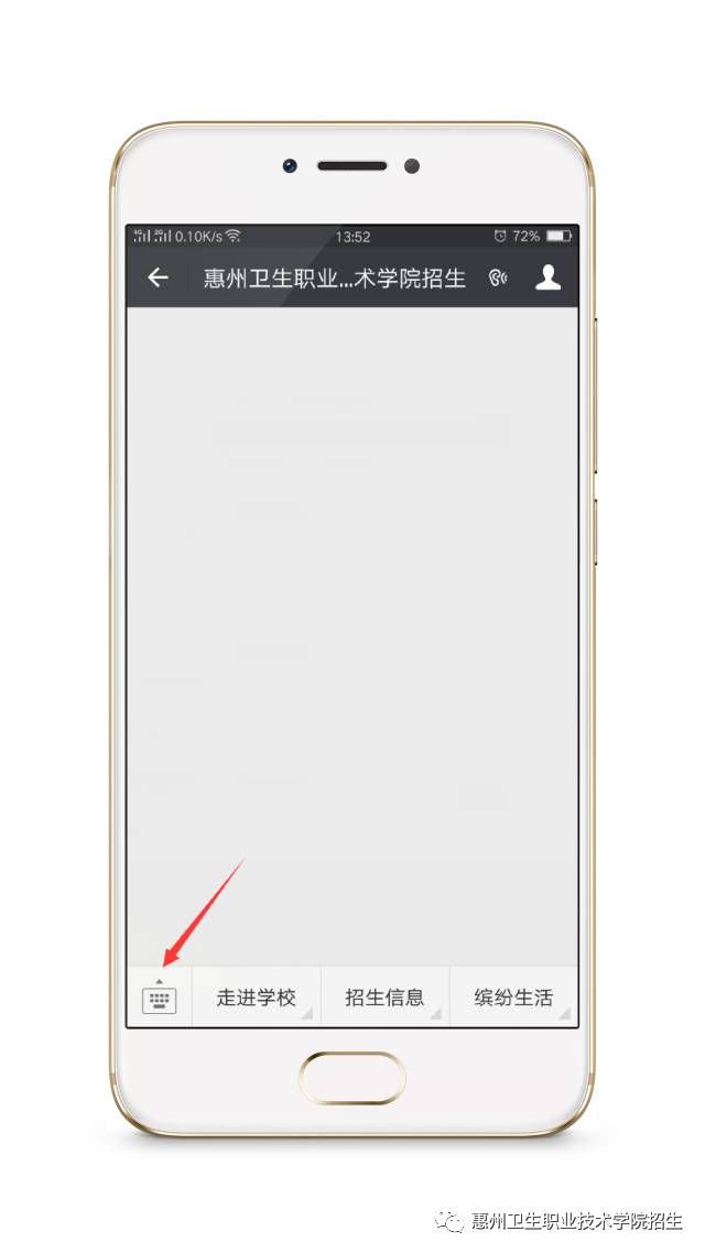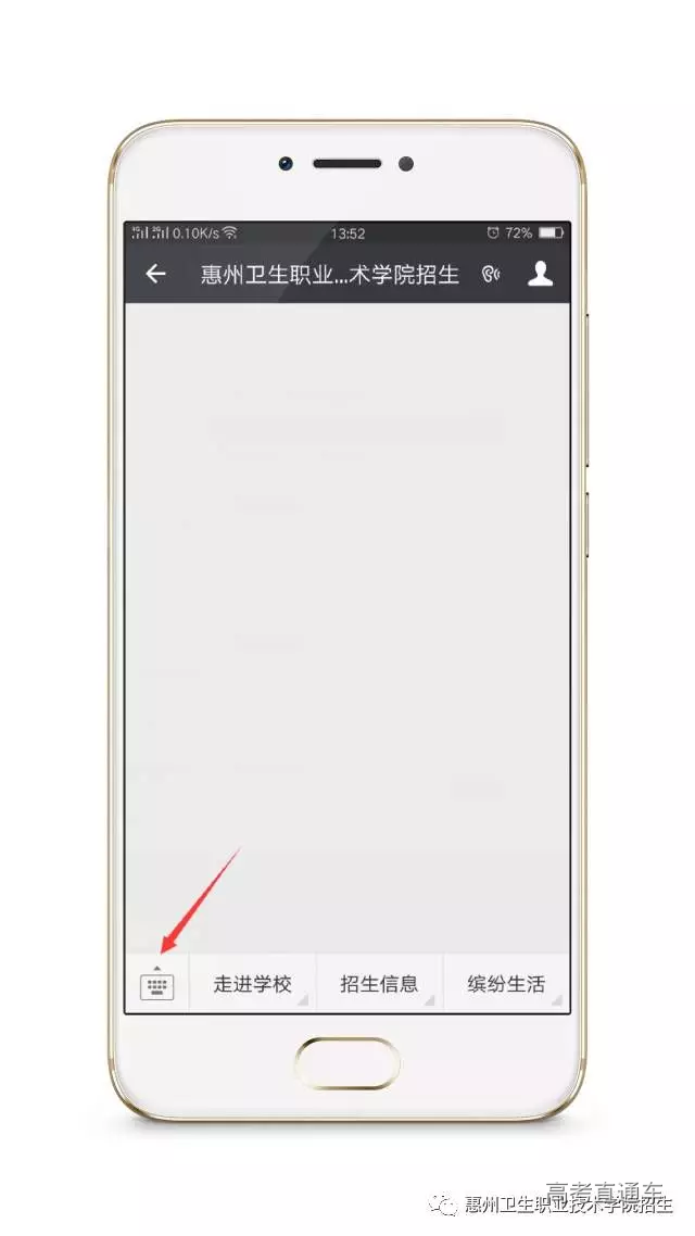 关注惠州卫生职业技术学院招生,点击公众号左下角小键盘进行输入。