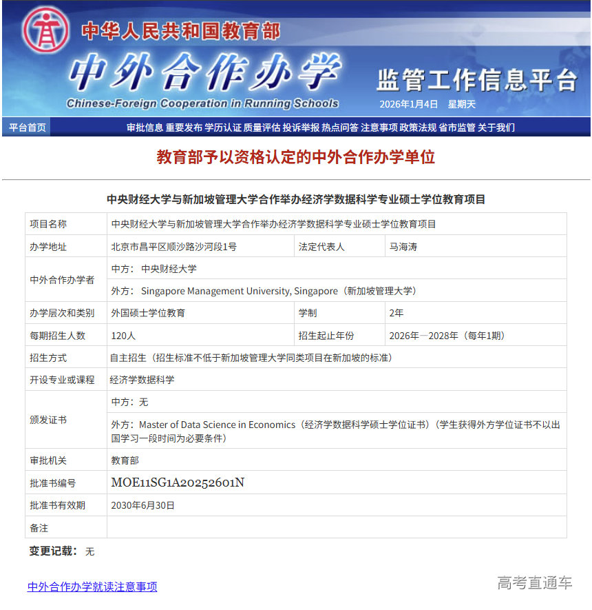 近日,教育部公布了最新一批中外合作办学项目审批结果。我院与新加坡管理大学经济学院合作举办的“经济学数据科学”专业硕士学位教育项目正式获批立项。