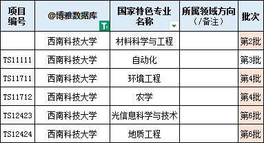 西南科技大学是国家重点建设的西部14所高校之一,是四川省人民政府与教 育部、国防科技工业局双共建高校。学校围绕特色鲜明高水平大学建设目标,主 动服务西部大开发、成渝地区双城经济圈、中国特色社会主义科技创新先行区等 经济建设和社会发展,聚焦军民融合和乡村振兴等国家重大战略,深入推进协同 创新和协同育人,走出了一条具有西南科大特色的“共建与区域产学研联合办学” 路子,获政府高度赞誉,社会广泛认可,师生一致认同。 办学历史悠久,文化底蕴厚重。学校始建于1952年,1978年举办本科教育, 成为西部唯一一所建材行业本科高校,为国家培养了一大批建材行业专门人才。 上世纪90年代,由原国家建材局领衔成立了产学研结合的学校董事会,与中国工 程物理研究院、中国空气动力研究与发展中心、四川长虹电子控股集团有限公司 等单位共同培养创新人才、共建学科实验室,逐步走出了一条“区域产学研联合 办学”的新路子,被原中央政治局常委、国务院副总理李岚清同志誉为“西南工 学院模式”(学校时名“西南工学院”)。学校地处“两弹一星”精神发源地, 拥有丰富的军工文化和优秀传统文化资源,“大禹文化”“李白文化”,与学校 七十载长歌奋进中凝聚的“艰苦奋斗,拼搏创新”的西南科大精神相生相长,丰 富了学校大学精神的内涵,成为西南科技大学不断发展的动力之源。 校园环境优美,办学条件一流。学校校园占地5,463亩,素有“园林式校园” 的美誉,被评为四川省绿色学校,是读书治学的好地方。现有建筑面积119万平 方米,固定资产总值28.70亿元,教学科研仪器设备值已达10.00亿元。学校图书 馆建筑面积3.60万平方米,藏有纸质图书269万余册,电子图书798万余册。学校 有环境友好能源材料国家重点实验室和国家原子能机构核环境安全技术创新中 心2个国家级科研平台,省部共建国家重点实验室1个,国家大学科技园1个,省 部共建协同创新中心1个,国家绝缘材料工程技术研究中心(共建)1个,国家遥 感中心绵阳科技城分部1个,有国防重点学科实验室1个、教育部重点实验室2个、 教育部工程研究中心1个,有四川省重点实验室3个,四川省工程技术研究中心4 个,四川省国际科技合作基地2个,四川省工程实验室3个,四川省协同创新中心 3个,四川省科技资源共享服务平台1个,四川省军民两用技术转移和产业孵化中 心等。有四川省高校重点实验室10个。有教育部国别和区域研究培育基地1个, 首批四川新型智库1个,有四川省哲学社会科学重点研究基地等省级研究平台5个、 省社科普及基地2个。高校编制、发布《本科教学质量报告》,是开展自我评估、健全质量保障体系、完善信息公开制度的一项重要工作,是增强社会责任意识、回应社会关切的体现,也是向社会展示学校风貌和办学特色、宣传办学理念和教学成果的途径。近期,学校发布2023-2024学年本科教学质量报告(2023.9~2024.8),(注:报告数据截至2024年8月,就业率为初次就业率。到了年底,年终就业率、升学人数,还会有明显提升。)学校设有工学、农学、理学、经济学、法学、 文学、管理学、教育学、艺术学等9大学科门类。材料科学、工程科学、化学、环 境/生态学、植物学与动物学5个学科进入ESI排名前1%,其中材料科学、工程科 学和化学3个学科进入ESI排名前5‰。学校有5个学科入选四川省"双一流"建设贡 嘎计划,其中Ⅰ类建设学科1个,Ⅱ类建设学科2个,Ⅲ类建设学科和培育建设学 科各1个,国防特色学科方向5个,国防基础学科1个,有省级优势学科和重点学 科15个。人才培养涵盖本硕博、留学生本硕博和硕士专业学位教育,有一级学科 博士学位授权点5个、一级硕士学位授权点24个和硕士专业学位类别18个。博士 后科研流动站3个。现有本科专业85个,招生专业77个,其中:国家级一流本科 专业建设点19个,省级一流本科专业建设点19个,通过国家工程教育专业认证(评 估)专业12个。学生在全国“挑战杯”“数学建模”“大学生创业大赛”等科技 文化体育大赛及学科竞赛中表现优异,其中学校机器人小组曾荣获全国大学生机 器人大赛冠军、亚太地区亚军、最佳技术奖。中国高等教育学会公布的“全国普 通高校大学生竞赛第八轮总榜单”中学校居全国第67位。学校先后培养了包括航 空武器火力控制系统国防专家卢广山、“中国天眼”选址人宋建波、中国硬笔书 法创始人庞中华、“感动中国2023年度人物”杨华德等在内的30余万德才兼备的 栋梁之才。学校现有教职工2,692人,其中专任教师1,920 人,正高职称321人,副高职称598人。有博士生、硕士生导师1478人;从董事单 位等聘任院士15人;有“百千万人才工程”国家级人选、IEEE Fellow和IET Fellow 人选、“长江学者奖励计划”青年项目、国家优秀青年基金获得者、国家“千人 计划”、“教育部新世纪人才计划”人选、享受国务院政府特殊津贴专家、四川 省有突出贡献的优秀专家、四川省学术和技术带头人及后备人选、四川省教学名 师等200余人次,19名教师进入全球前2%顶尖科学家榜单。有“核废物环境下的 生物效应”“核应急环境安全智能感知与预警”国家国防科技创新团队2个,“碳 纳米材料”“特种高分子”“军民融合研究”等8个省部级科技创新团队,以及 “光电检测技术与研究”等17个四川省教育厅创新团队。有电子技术与创新