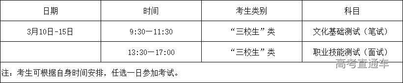 2023年分类考试招生考试科目及时间安排表
