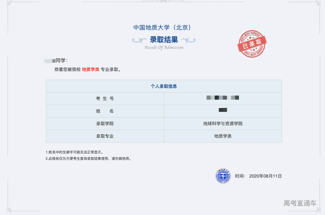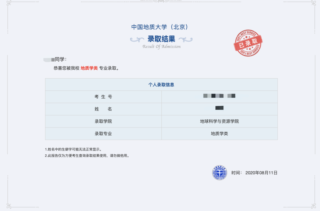 目前,部分省市高考志愿填报已陆续结束,录取工作也在紧张进行中,目前完成录取的各位考生和家长可第一时间通过中国地质大学(北京)本科录取查询系统进行查询。