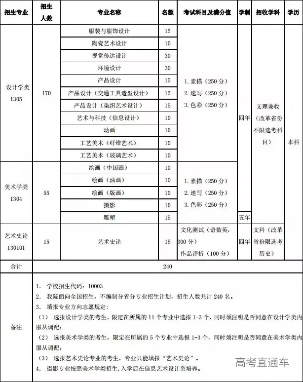 (2)艺术史论:全国统一录取,其中每个省录取人数不超过2人,超过上限的省份单独划定录取线。