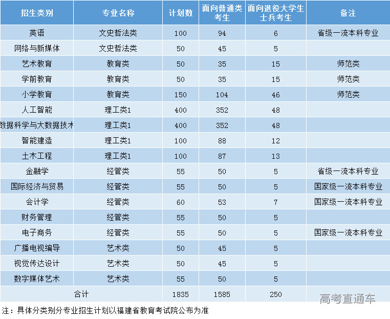 福州外语外贸学院2025年专升本招生专业计划