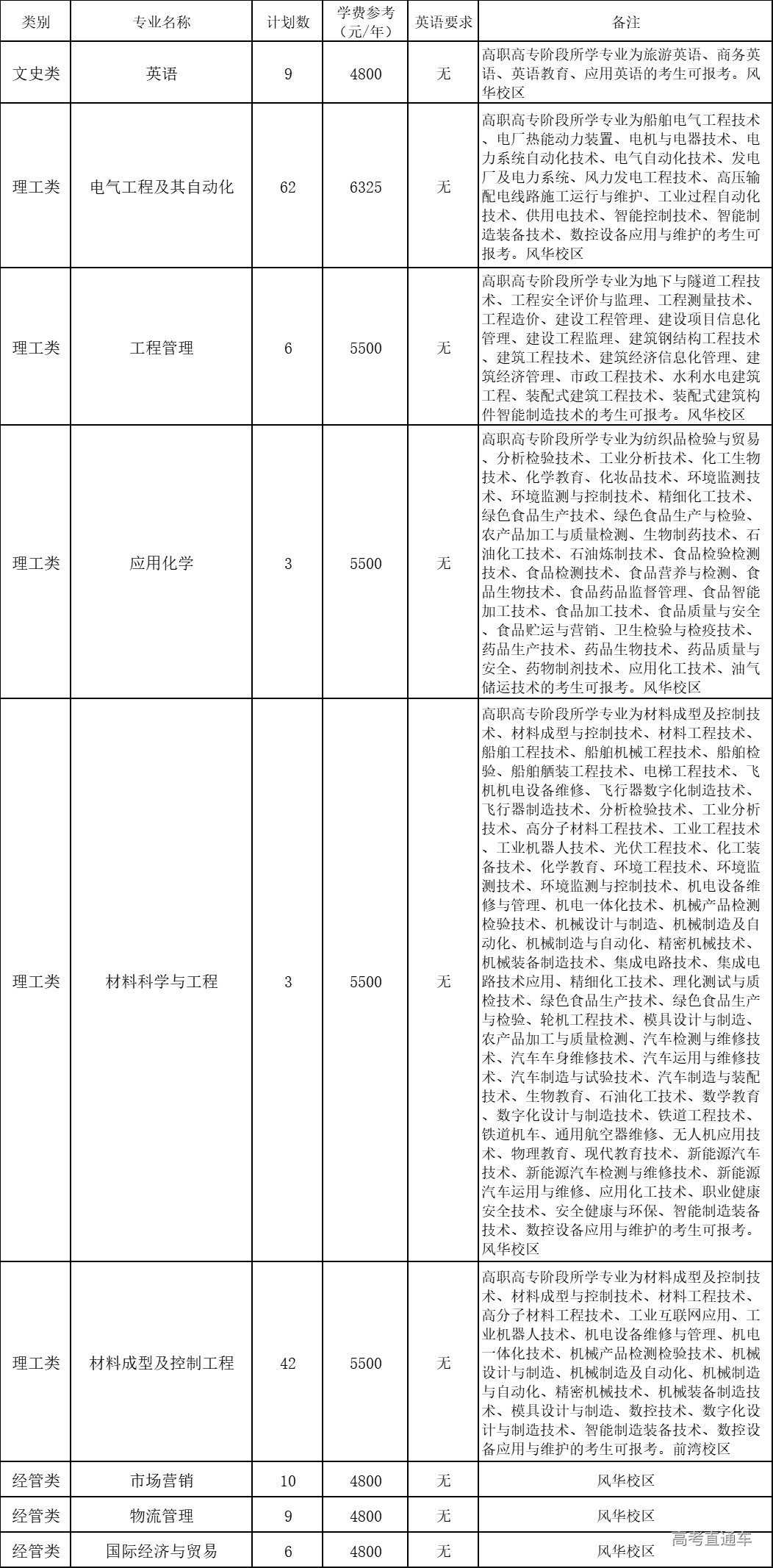 注:具体招生计划数及对应的招生专业范围以浙江省教育考试院公布为准;学费标准供参考,最终以物价部门批准公布为准;“备注”中注明条件的,符合条件的考生方可报考;没有备注说明的,表示没有特殊要求。