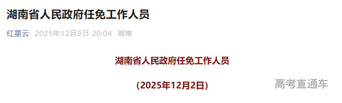 12月9日,湖南省委组织部官方公众号“红星云”发布一则《湖南省人民政府任免工作人员》。其中,蒋昌波同志任长沙理工大学校长,免去其湖南工业大学校长职务。据悉,此前担任长沙理工大学党委副书记、校长的曹一家的名字已于2024年11月从学校“现任领导”栏目中撤下。至今,校长职务空缺已有一年。
