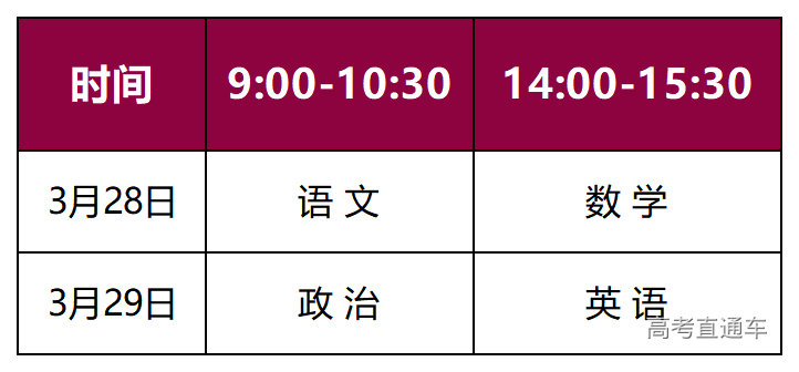 2.参加高考报名所在地省级招生考试机构组织的文化考试,考试科目为语文、数学、政治、英语四科,各科试卷满分为150分,总分600分。考试地点见准考证。