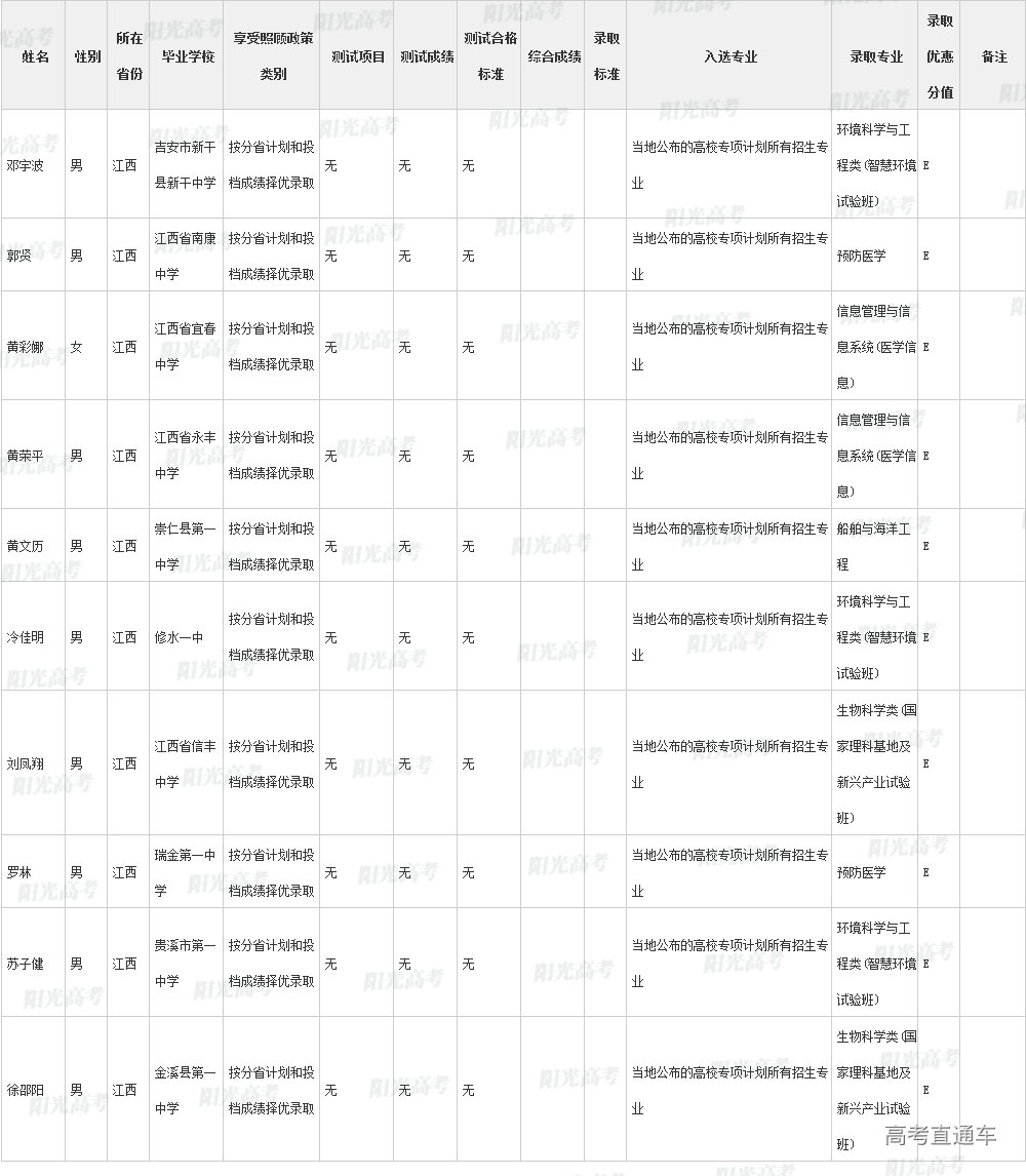 ②入选考生达到生源所在省份一本批次录取控制分数线即予以录取的,以“C”标注;也可是"C"+"数字",表示一本批次录取控制线上多少分录取,如C20表示一本批次录取控制线上20分录取;