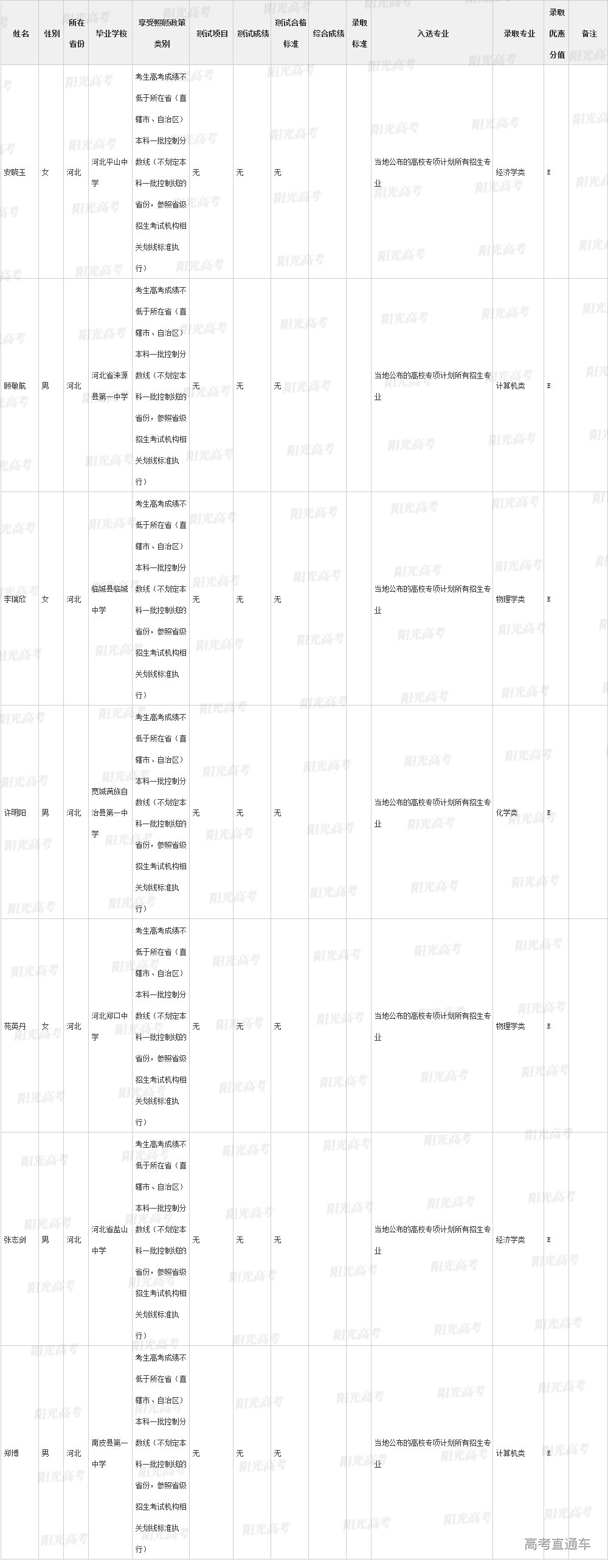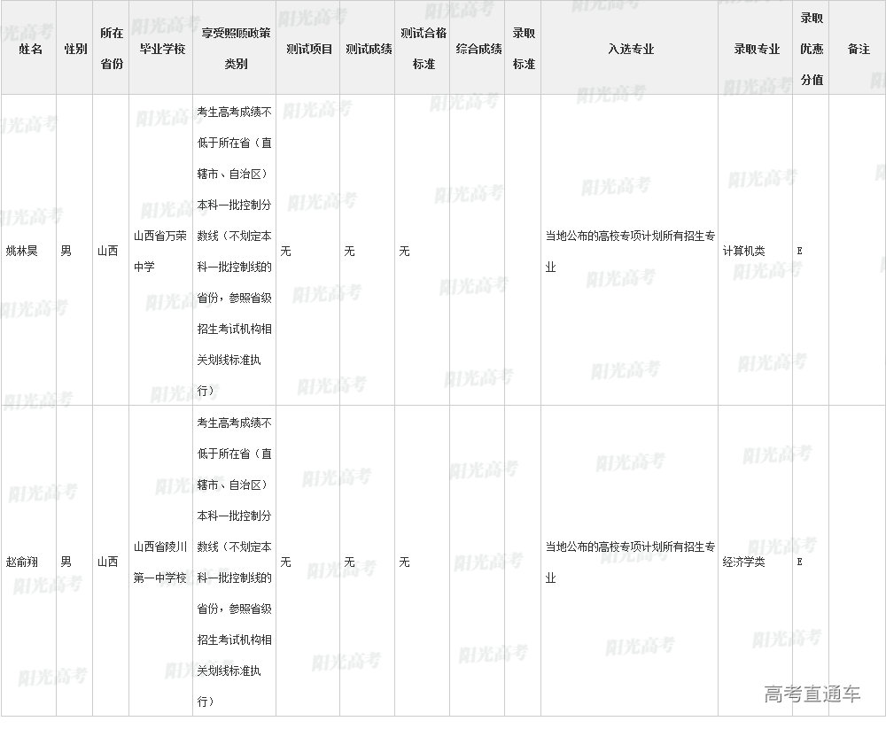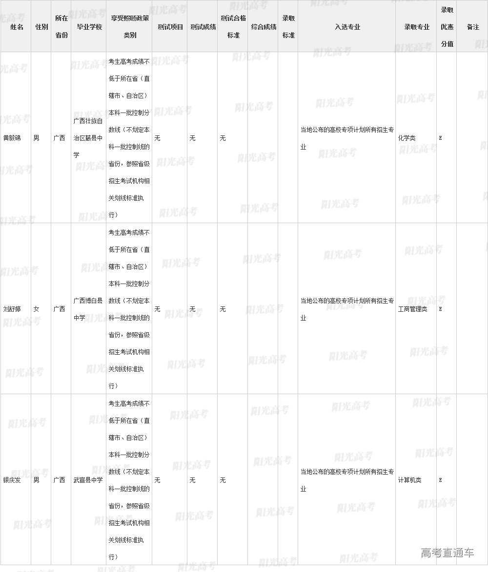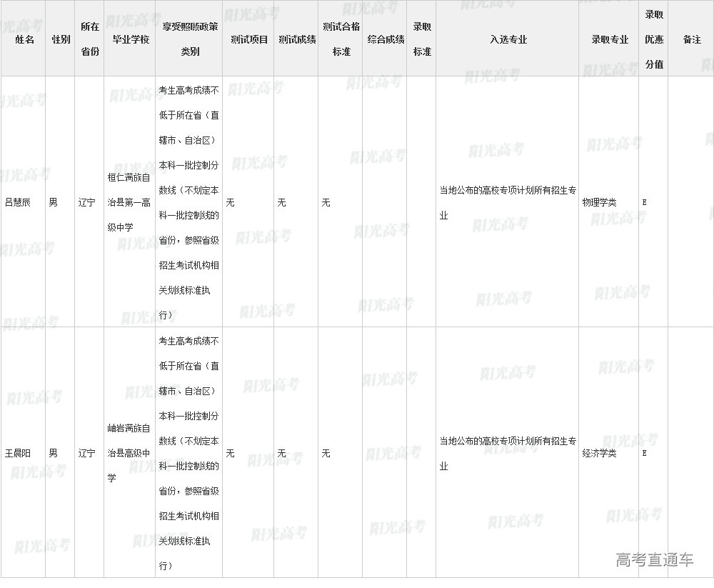 ②入选考生达到生源所在省份一本批次录取控制分数线即予以录取的,以“C”标注;也可是"C"+"数字",表示一本批次录取控制线上多少分录取,如C20表示一本批次录取控制线上20分录取;