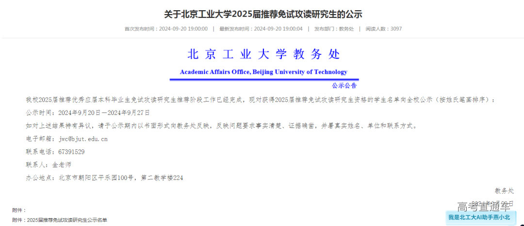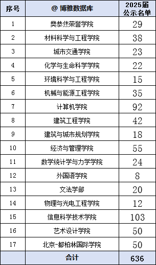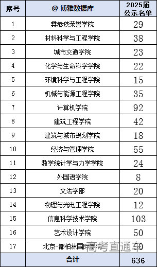 根据 北京工业大学教务处关于北京工业大学2025届推荐免试攻读研究生的公示,名单共计636人。较上届明显增加。