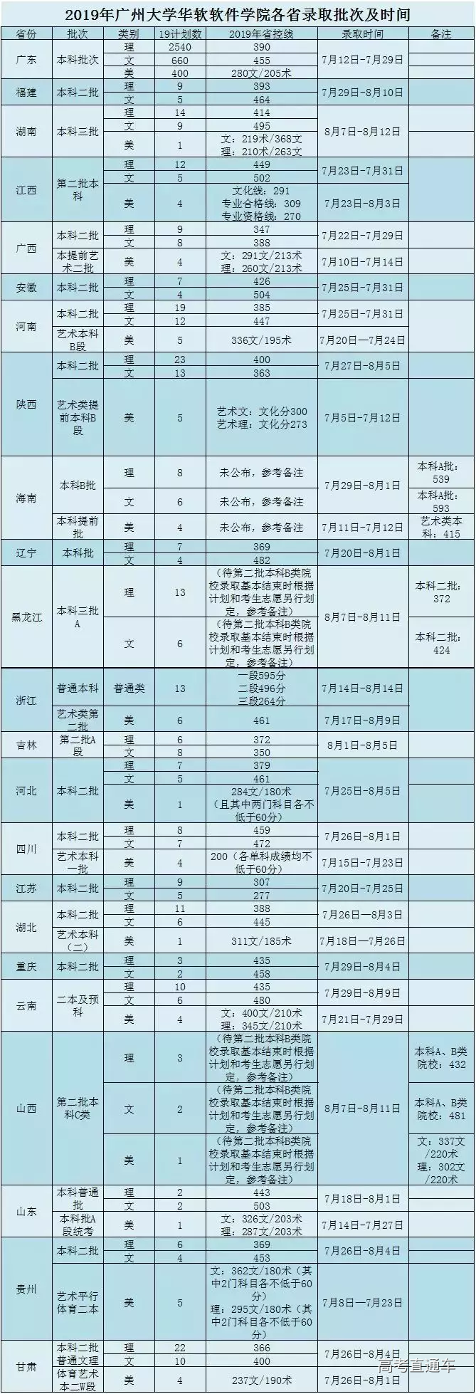 为你附上一张华软在各个省份的录取时间表