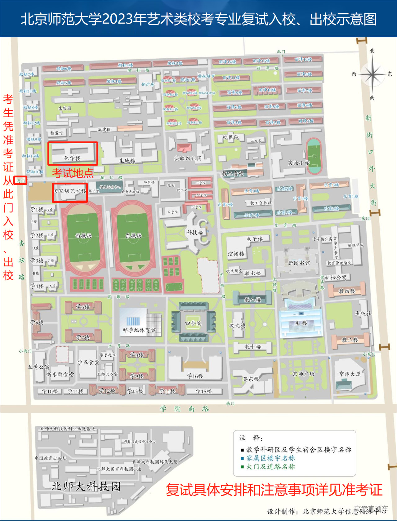 北京师范大学2023年艺术类招生初试结果已公布,请考生点击页面下方附件1(2023年艺术类初试合格名单.pdf)或登录网上报名系统(https://gaokao.chsi.com.cn/zzbm/yslbm/)查询初试结果。复试时间为3月25日—26日,复试地点为北京师范大学田家炳艺术楼、化学楼,入校地点为北京师范大学西门,详见附件2(艺术类校考专业复试考生入校示意图)。复试具体安排和注意事项详见复试准考证。