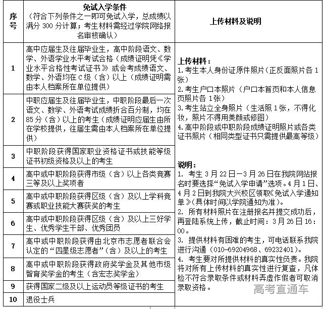 (一)免试入学考生条件、成绩评定及上传材料: