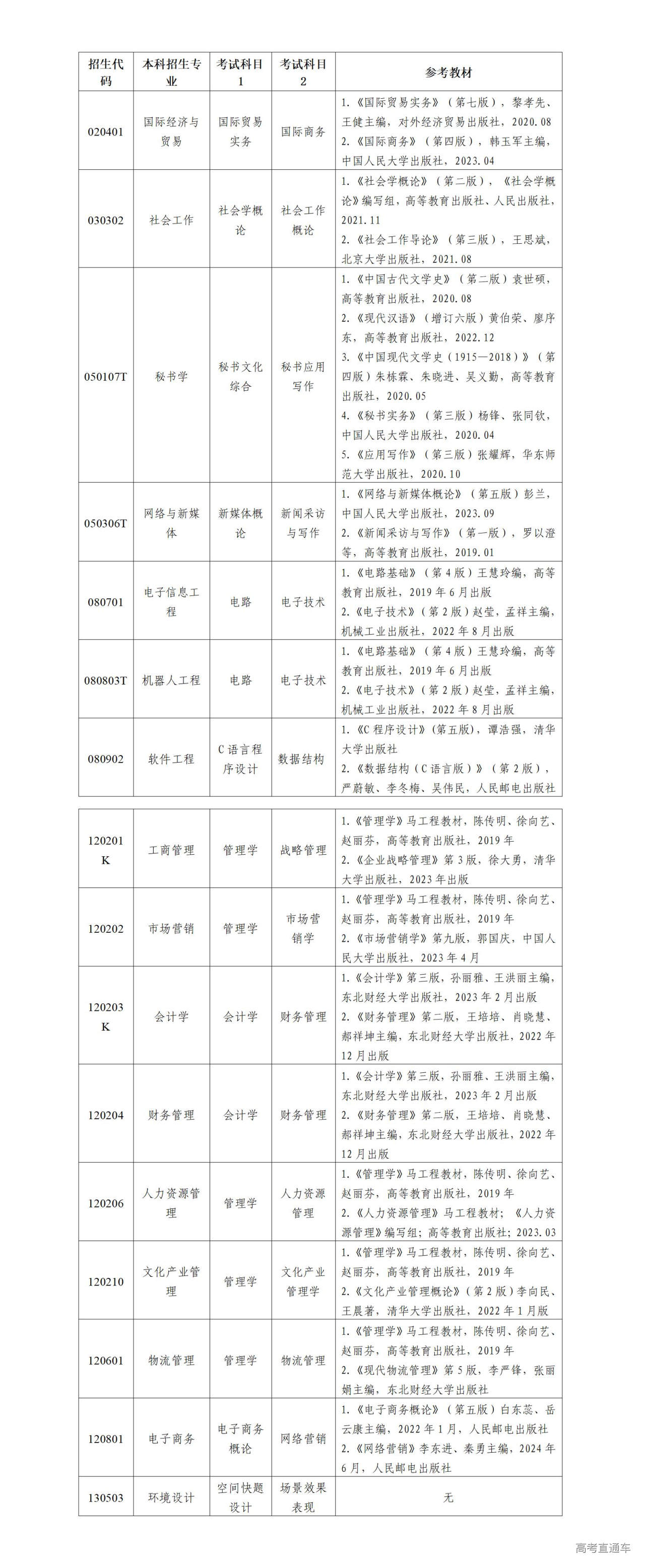 1.普通类专业采用笔试测试。包括国际经济与贸易、社会工作、秘书学、网络与新媒体、电子信息工程、机器人工程、软件工程、工商管理、市场营销、会计学、财务管理、人力资源管理、文化产业管理、物流管理、电子商务专业。
