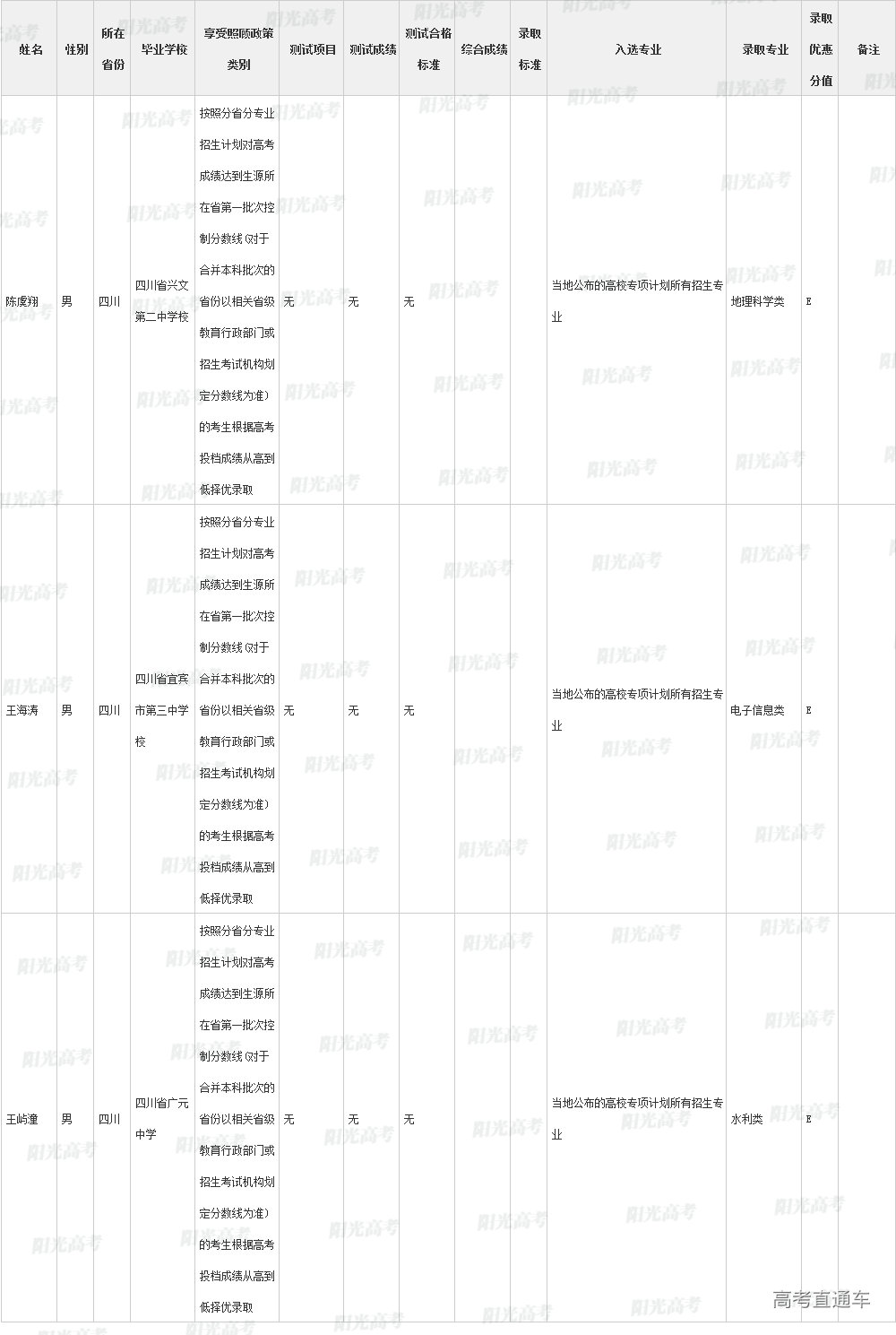 ④按分省计划择优录取的用E标注;