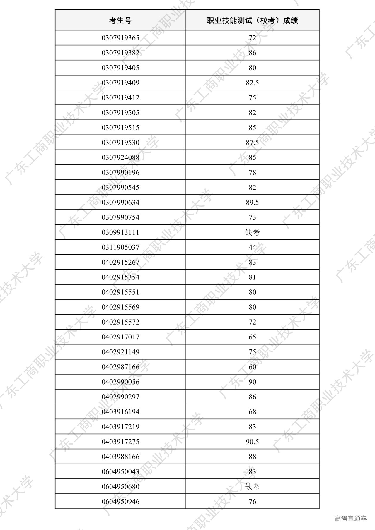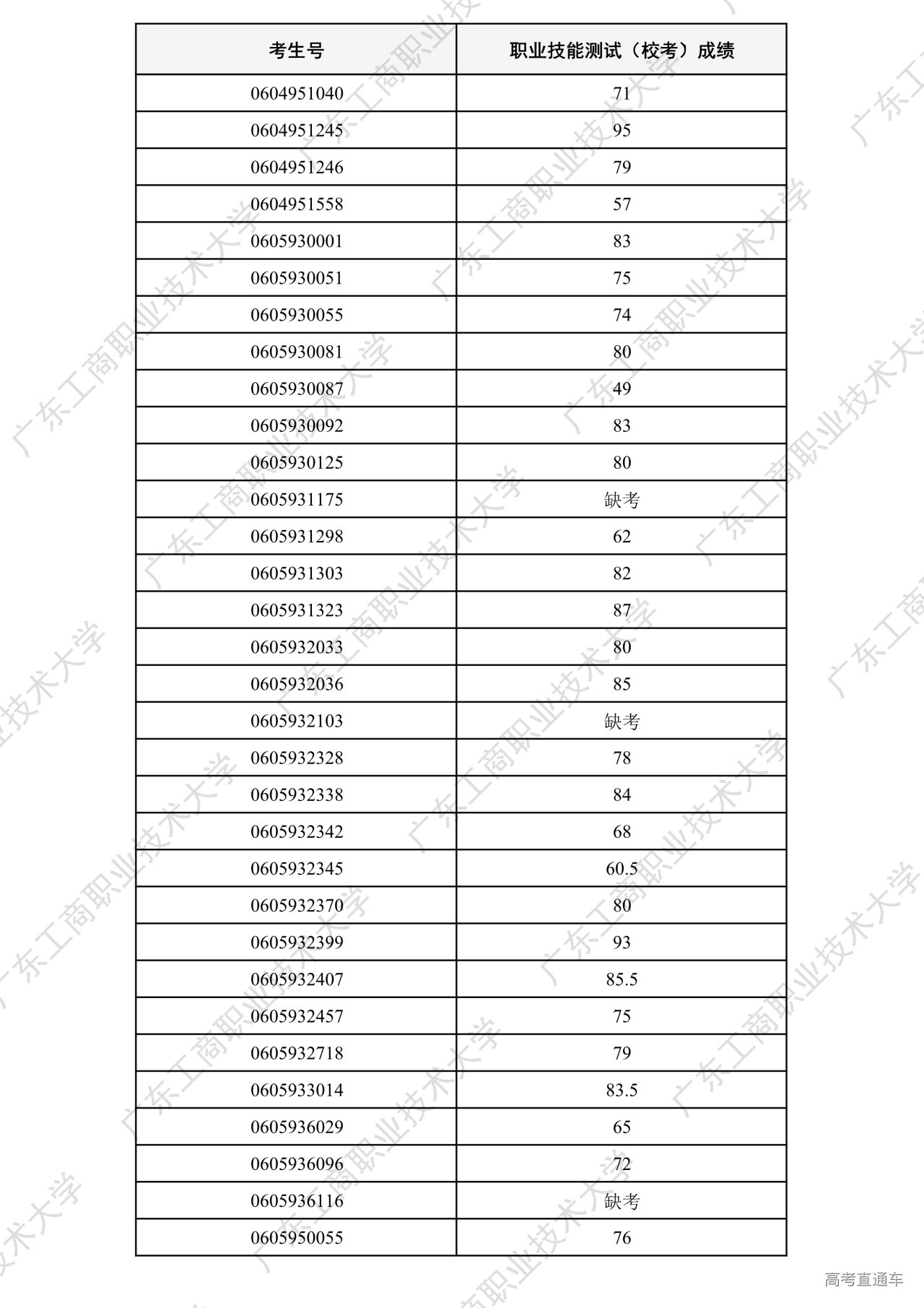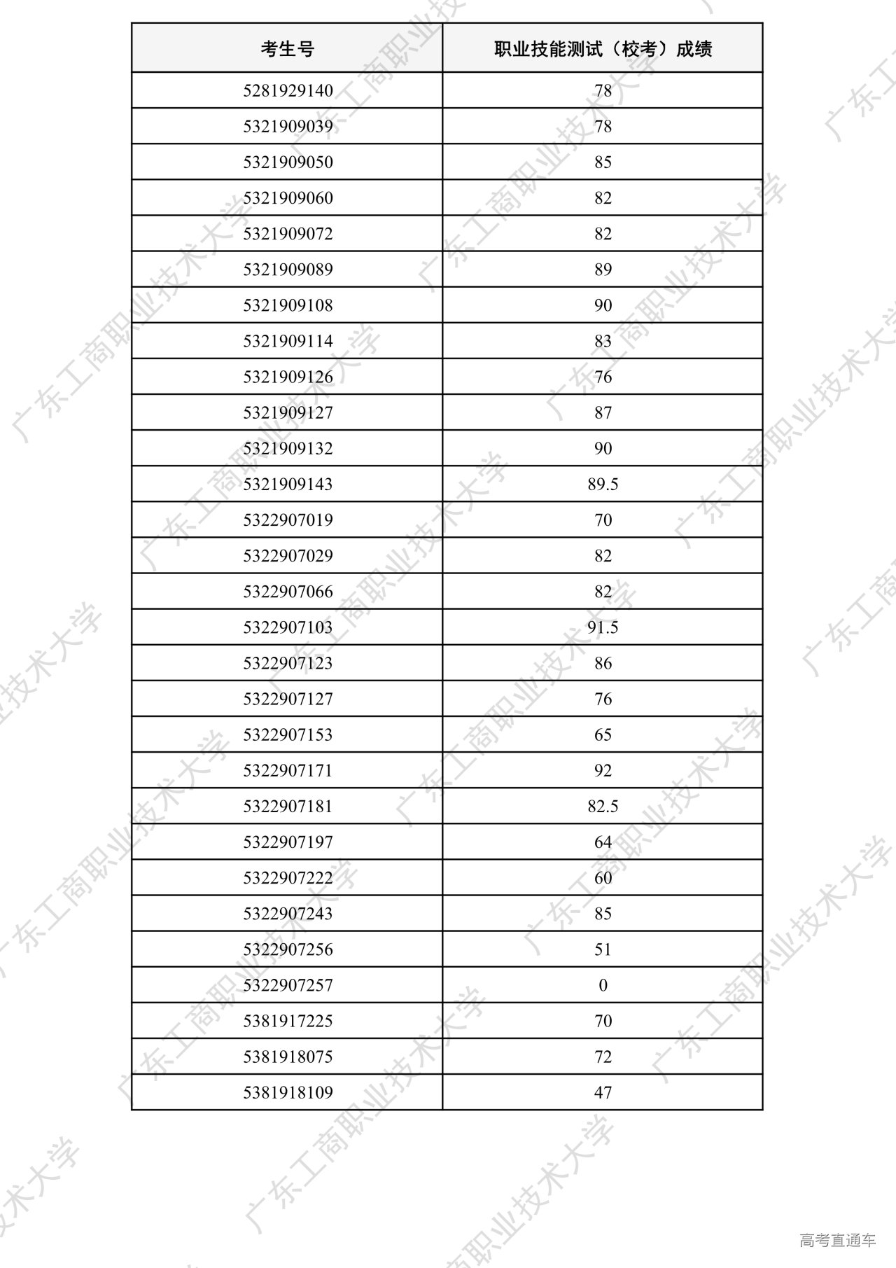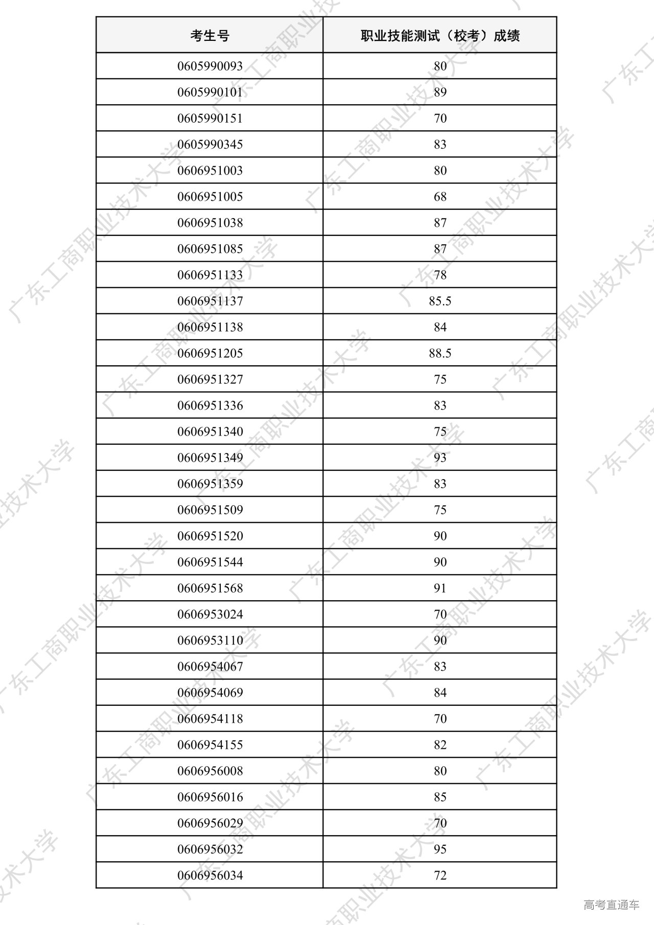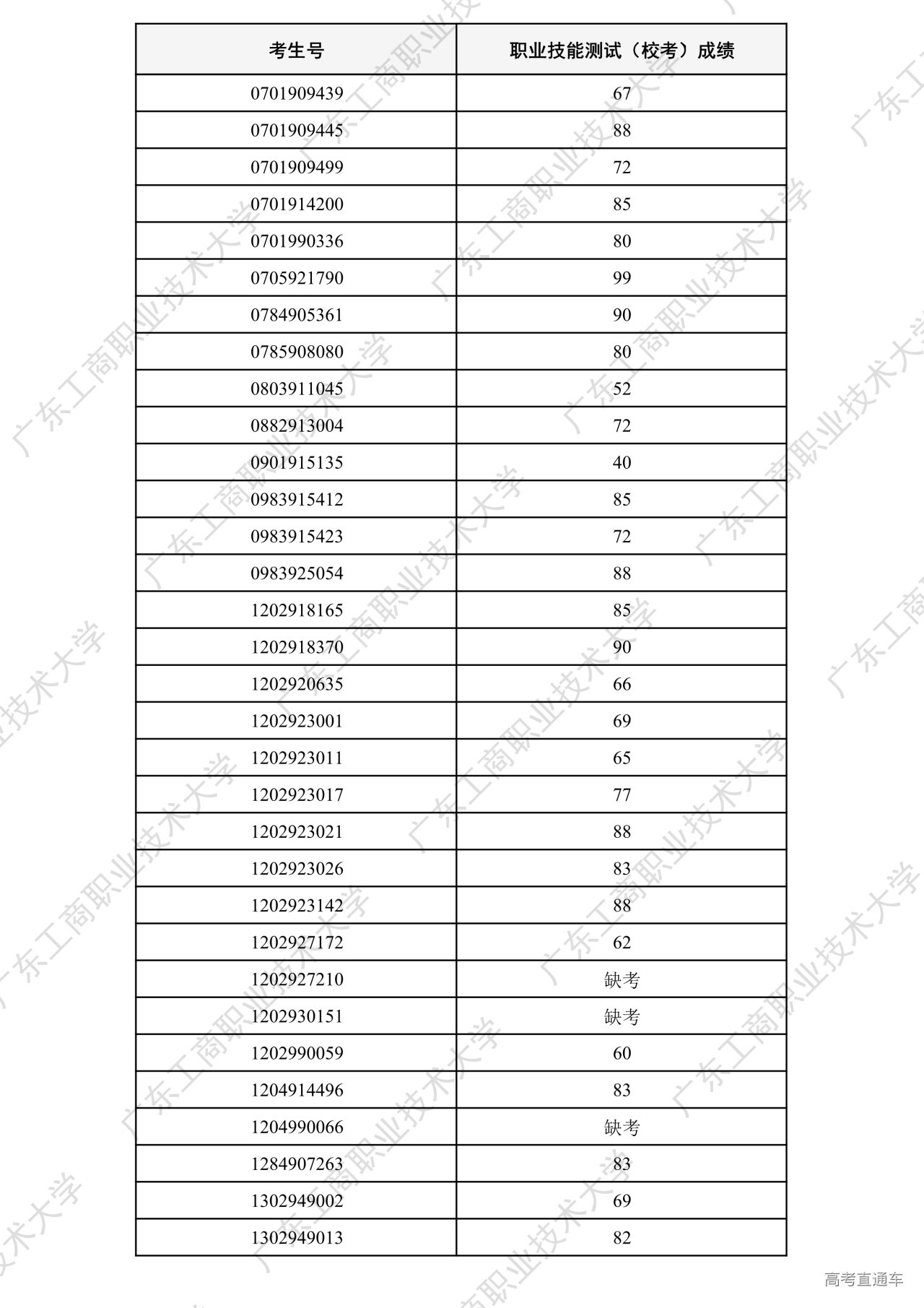 我校2026年“中职升本科”招生考试职业技能测试工作已全部结束。根据广东省招生委员会办公室和《广东工商职业技术大学2026年春季高考招生章程》相关要求,各专业测试成绩合格线为60分以上(含60分)。现将我校2026年“中职升本科”招生考试职业技能测试成绩进行公示。