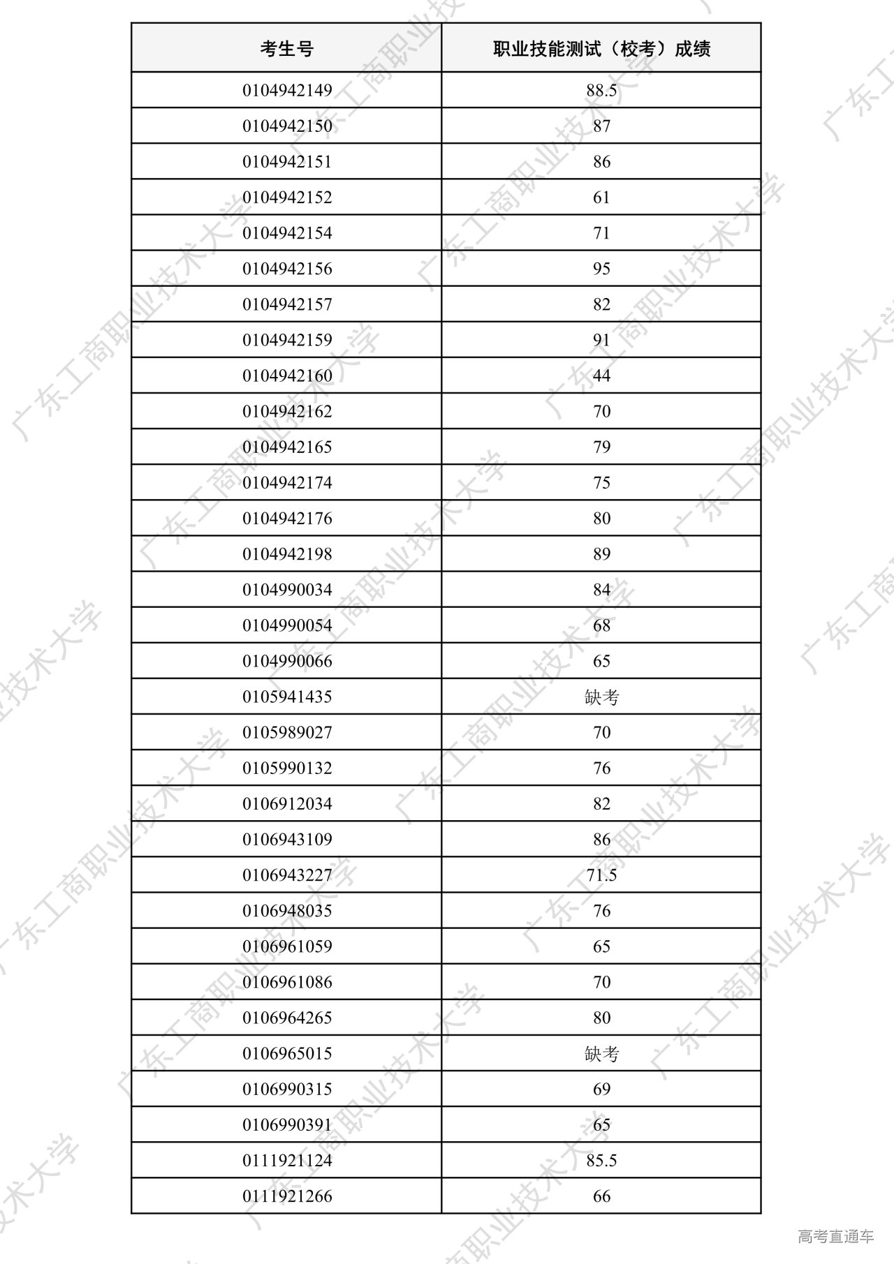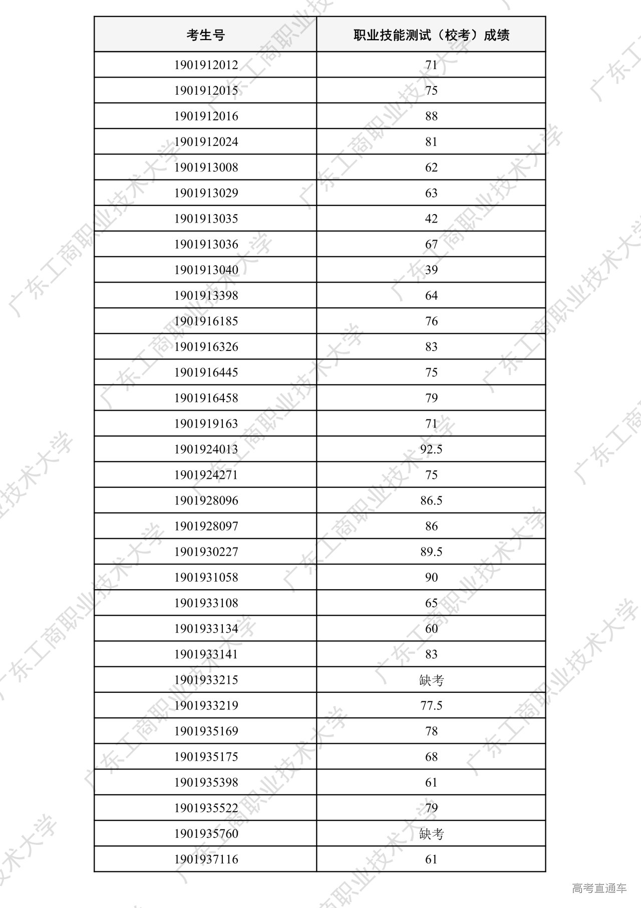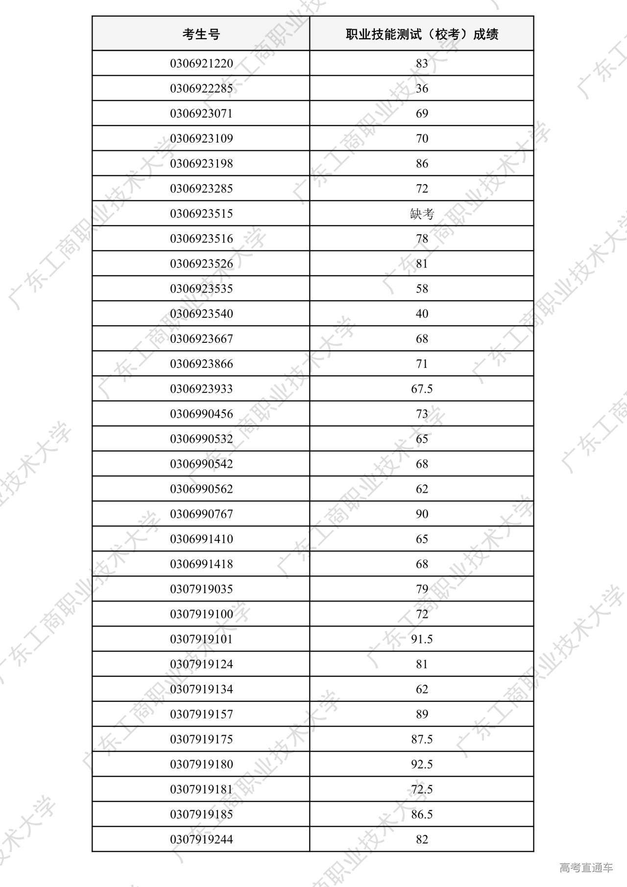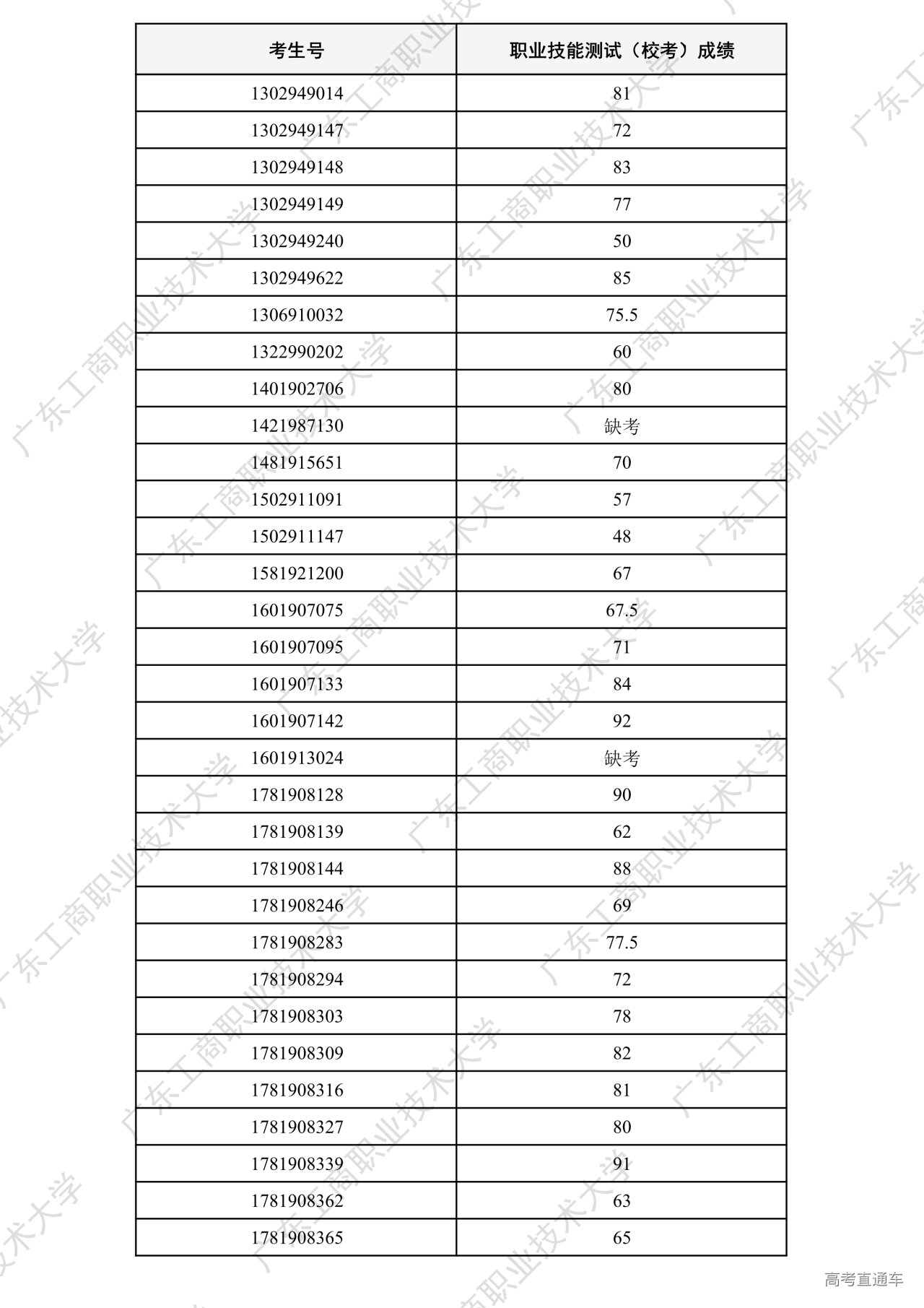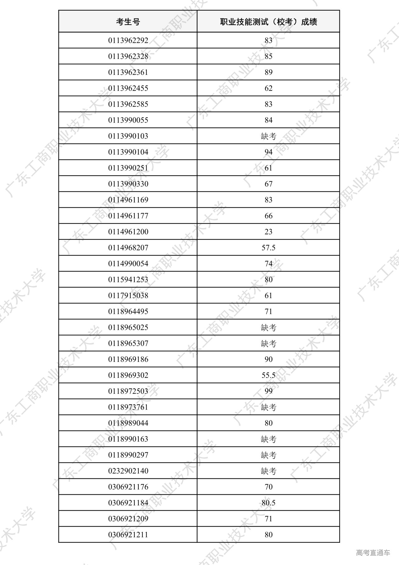 我校2026年“中职升本科”招生考试职业技能测试工作已全部结束。根据广东省招生委员会办公室和《广东工商职业技术大学2026年春季高考招生章程》相关要求,各专业测试成绩合格线为60分以上(含60分)。现将我校2026年“中职升本科”招生考试职业技能测试成绩进行公示。