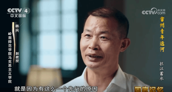 此前,CCTV-4《国家记忆》栏目播出两集纪录片《雷州青年运河》,讲述了上世纪50年代在党中央、中共广东省委的支持下,中共湛江地委带领30多万劳动大军自力更生、克服困难建设雷州青年运河的恢弘历程。林兴副教授研究成果为纪录片提供了“雷州青年运河是我国民办公助大型水利工程先行者、鲜为人知的鹤地水库抢险全经过、运河线路设计原则”等重要历史细节和大量珍贵史料。