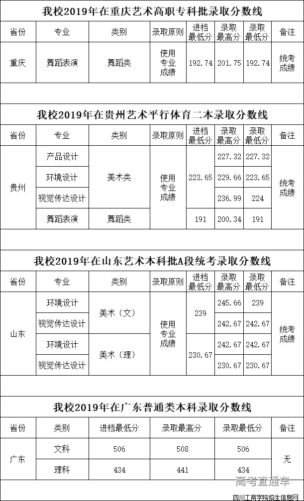 我校在重庆艺术高职专科批、贵州艺术平行体育二本、山东艺术本科批A段统考、广东普通类本科等批次录取结果可查询