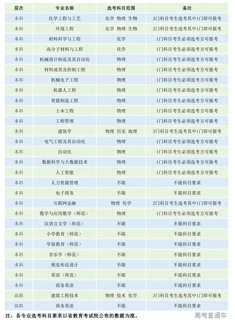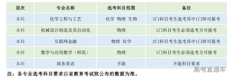 衢州学院2021年招生专业选考科目范围(湖南省)