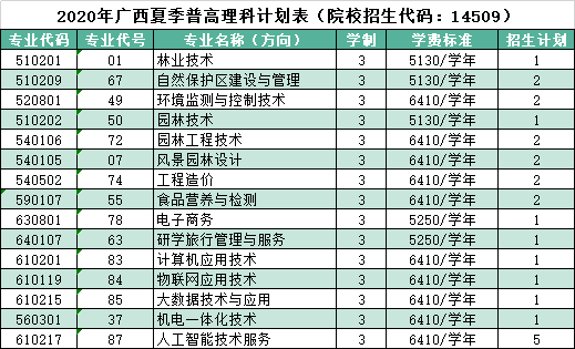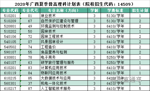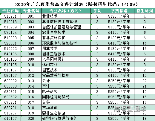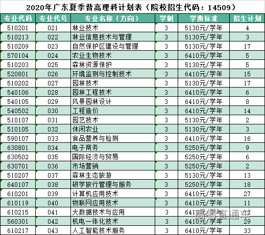 各专业报考代码为3位数,与下列表格中的专业代码不同,届时可在《广东省2020年普通高等学校招生专业目录》查询。