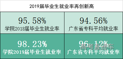 学院2018届毕业生就业率(95.58%)与广东省2018届普通高等学校毕业生初次就业率(专科生为94.56%)相比,超过全省平均水平1.02%。