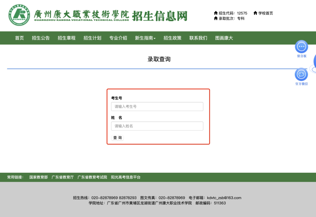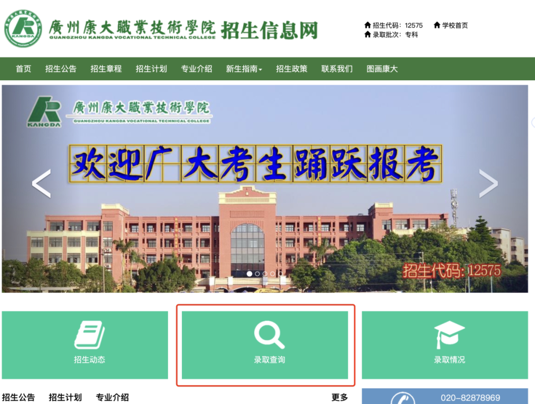 二、在广州康大职业技术学院招生信息网(https://zsb.kdvtc.edu.cn)进行查询。